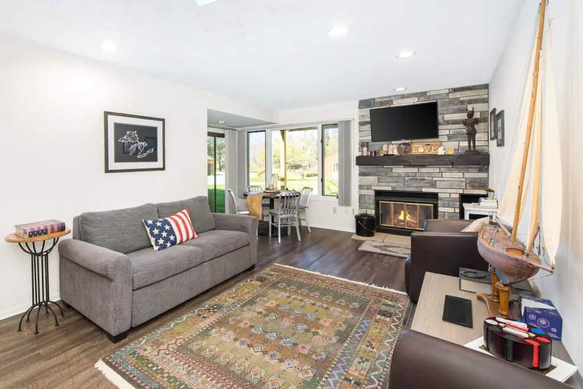 Tasteful "all seaons" main floor Northern Michigan condo with lake access. A private beach and many local activities await you. Perfect for up to 4 guests, with a fully equipped kitchen, comfortable living space, and near to everything. IMPORTANT: After booking you will receive a link to complete a Guest Registration form online for the condo association. Also, HOA rules do not allow bookings less than 8 days in advance of your arrival. Contact us if questions.