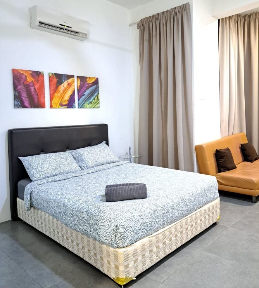 Bienvenue dans notre Breeze Cottage situé à Empire Damansara Damansara Perdana. C'est un studio comprenant un lit queen size, un canapé-lit et un matelas simple pliable, une armoire de cuisine, un four à micro-ondes, une cuisinière électrique, un réfrigérateur, un lave-linge, un chauffe-eau, un sèche-cheveux, un fer à repasser, etc. peuvent rester 1 à 2 personnes. Vous pouvez profiter de votre bon week-end ou de votre voyage d'affaires ici. ** premier voyageur, nous aurons besoin d'une pièce d'identité (permis de conduire ou carte d'identité) ** Fumer trouvé dans la chambre sera très bien Rm100