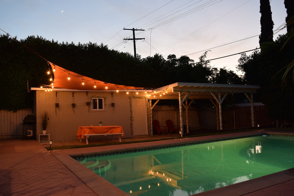 Détendez-vous au bord de la piscine ou dans le jacuzzi entouré d'une végétation luxuriante à l'extérieur de cette maison d'hôtes spacieuse et rénovée nichée dans un cadre magnifique et privé. Les points forts intérieurs comprennent une télévision LED et un système de son surround, une kitchenette et un grand espace de rangement. (La piscine est disponible du 1er mai au 30 septembre (sans exception) MAIS le jacuzzi est disponible toute l'année.) Nous fournissons également une cafetière Keurig avec des dosettes K-cups ainsi que du vin et de l'eau en bouteille gratuits. Il y a une télévision LED grand écran murale avec un système surround avec YouTubeTV et Netflix. Il y a un lave-linge et un sèche-linge à l'extérieur de la maison sur le patio pour votre commodité et un fer et une planche à repasser se trouvent dans le placard sous les escaliers. Piscine et jacuzzi : la piscine n'est disponible/chauffée que du 1er mai au 30 septembre. Aucune exception. Le jacuzzi est disponible sur demande. La maison d'hôtes est indépendante, privée et séparée de la maison principale par une piscine, un belvédère et une grande cour arrière. Vous avez un accès gratuit à la propriété et à la piscine. Nous nous ferons un plaisir de rendre votre séjour aussi confortable que possible. L'un d'entre nous travaille à l'extérieur de la maison et peut être accessible si vous avez besoin d'aide. Explorez Los Angeles : partez pour une courte promenade vers d'innombrables restaurants et magasins sur Ventura Boulevard. Les universités, les parcs à thème, les attractions touristiques et, bien sûr, Hollywood sont à quelques minutes en voiture. Vous pouvez marcher jusqu'à presque tout ce dont vous avez besoin pour prendre un bus à seulement un pâté de maisons. * Les fêtes, événements ou grands rassemblements sont interdits. * Les voyageurs doivent tous avoir au moins 21 ans, sauf dans le cas des familles voyageant avec des enfants. * La piscine est uniquement disponible/chauffée du 1er mai au 30 septembre. Aucune exception. Jacuzzi disponible sur demande. * Piscine et escaliers non fermés. Les enfants doivent être surveillés à tout moment. Le voyageur accepte toute responsabilité et dégage le propriétaire de toute responsabilité.