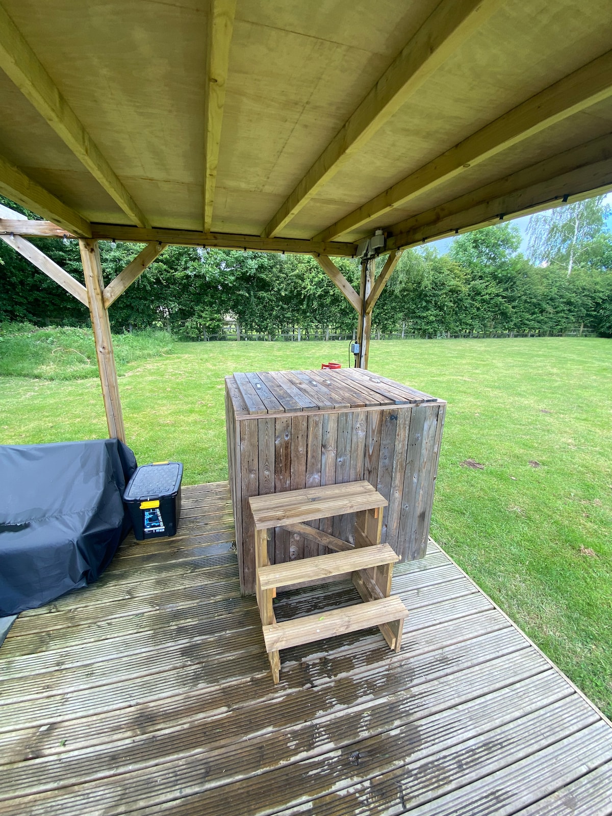 Grand bubble peut accueillir 4 personnes qui peuvent profiter de la vue ultime sur la nature. Vous pouvez vous endormir avec les étoiles et vous réveiller avec le soleil levant. Cette bulle a le facteur wow et comprend votre propre jacuzzi, barbecue, une douche, des toilettes à chasse d'eau, un jeu d'échecs en plein air et une voiturette de golf. La bulle est très isolée au fond d'un champ de 12 acres en bordure d'un bois. À l'extérieur de la bulle se trouve un très grand belvédère extérieur avec des sièges confortables et un grand barbecue à gaz, de sorte que même s'il pleut, vous pouvez toujours faire un barbecue confortablement.