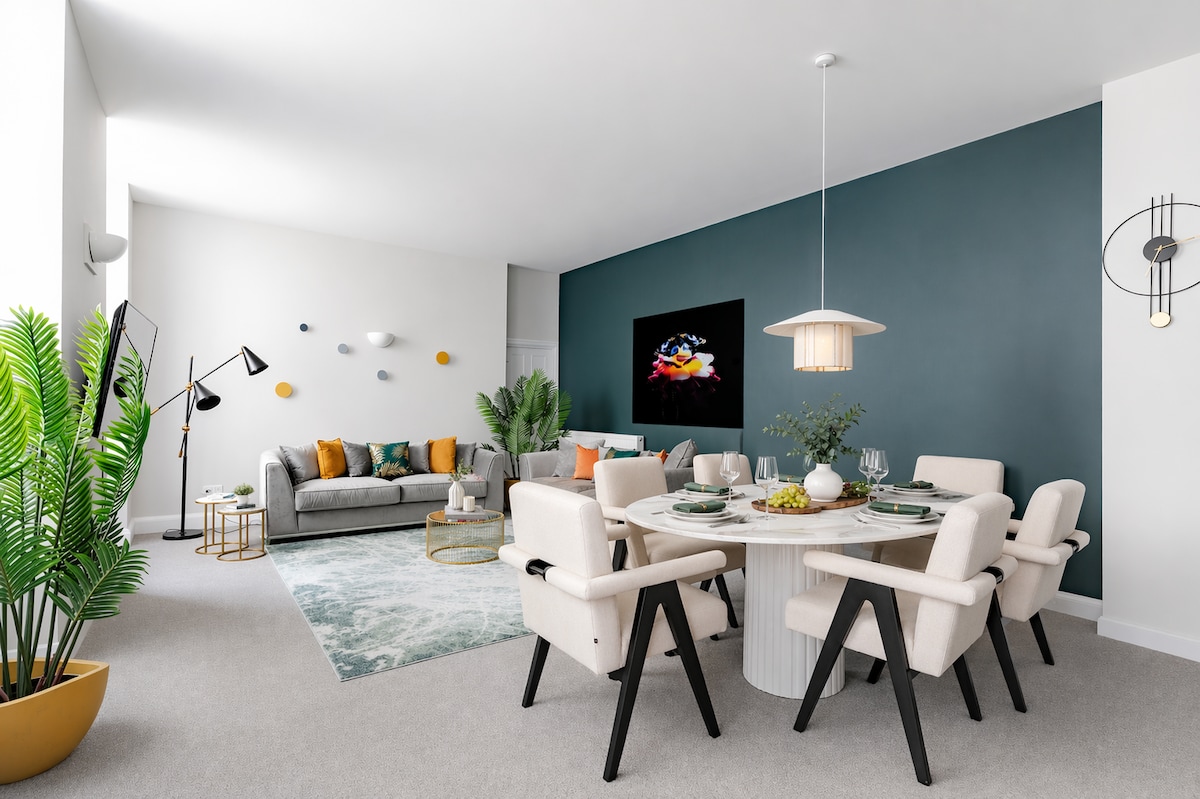 Offrez-vous un séjour vraiment luxueux dans cet appartement exclusif, conçu pour le confort, la détente et des moments inoubliables. Parfaitement située à proximité de tout, cette superbe retraite permet d'explorer sans effort tout en profitant d'une intimité totale. Paroi vitrée | Douche à l'italienne | Terrasse extérieure | Grande télévision connectée avec Netflix | Articles de toilette | Couette et oreillers en plumes de canard | Cuisine | Lit super king size Cet endroit spécial est proche de tout, ce qui facilite la planification de votre visite