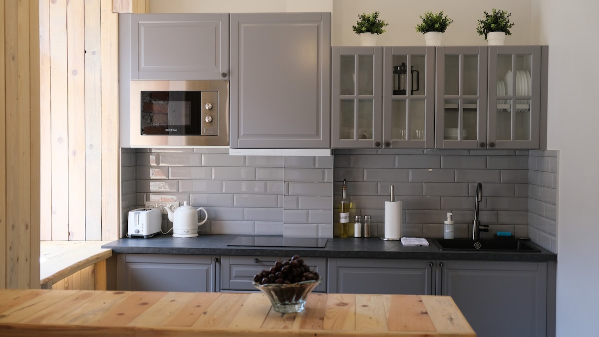 Studio de 85 m² récemment rénové, élégant et confortable sur deux niveaux dans un quartier calme et verdoyant de Riga – Bieriņi. Parfait pour se détendre et échapper à l'agitation de la ville. Conçu et meublé avec soin. 20 min en bus ou 10 min en taxi de la vieille ville. À proximité : Āgenskalns, Torņakalns. Jūrmala – 30 min en voiture/train. Aéroport - 10 min. Consulter mes autres annonces en cliquant sur ma photo et en faisant défiler la page jusqu'à « Voir toutes mes annonces »