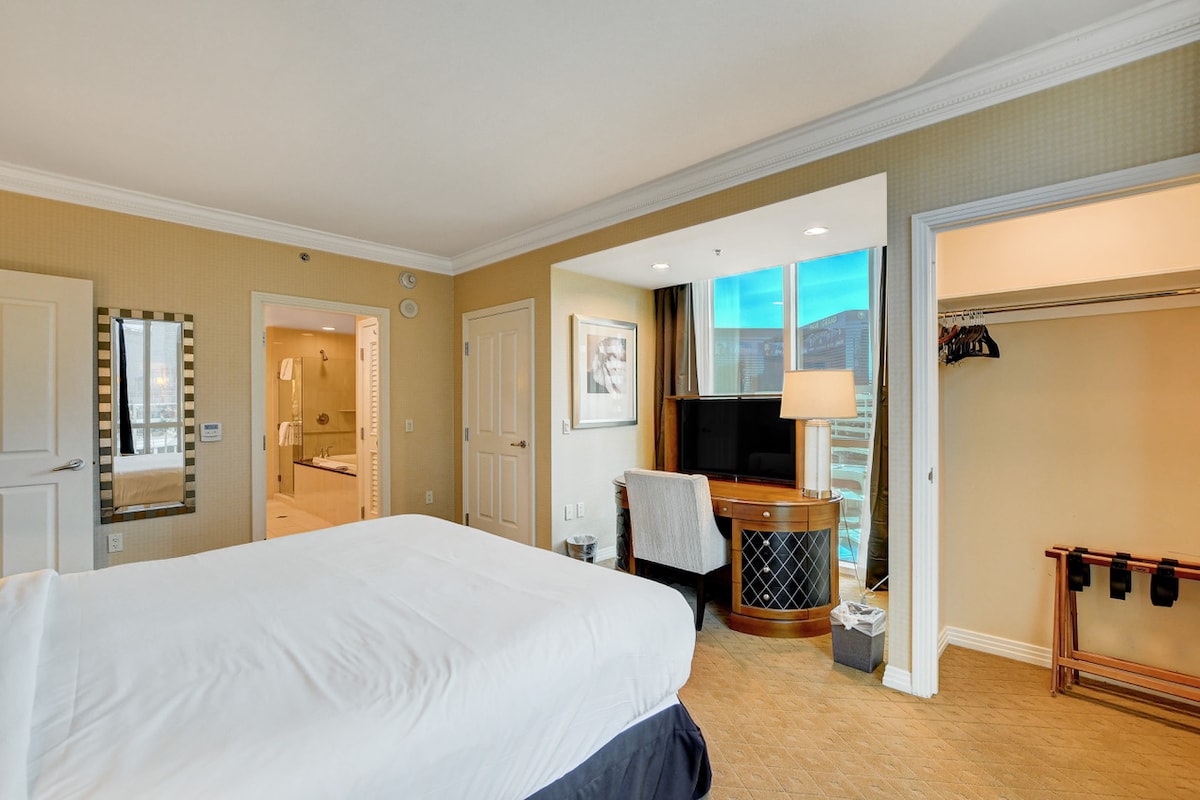 *No resort fees, free valet parking* ---- *Best last minute deals* This new modern luxury studio parlor suite condo is equipped with everything you need for short or long term stay. It is conveniently located right in City Center, connected to Bellagio by a bridge, with partial view of the Bellagio fountain and the strip, and is close to all the action in Vegas. The pictures of the room are actual pictures of my place.