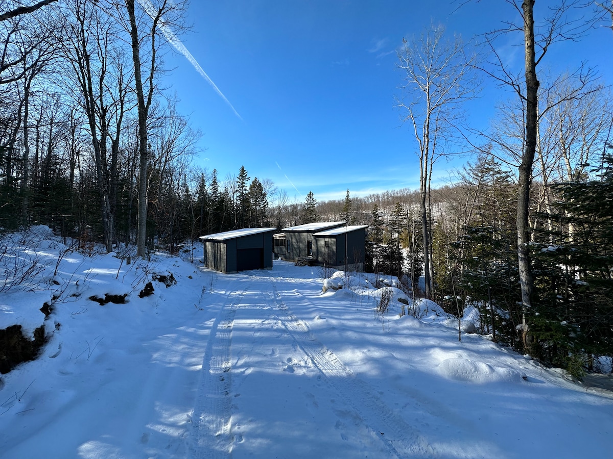 Notre chalet en forêt nordique est parfait pour passer du temps de qualité en couple (ou avec un enfant), ou pour un traitement professionnel (avec WiFi haut débit). L'intérieur en bois est chaleureux et confortable. Les fenêtres pleine hauteur offrent une vue imprenable sur une vallée boisée. La cuisine ouverte et le salon vous gardent dans la conversation pendant que vous cuisinez. Si vous préférez cuisiner à l'extérieur, il y a une cheminée avec un barbecue et une table à manger extérieure. À seulement 70 min en voiture de Montréal. Le lac est à 25 minutes à pied si vous vous garez à proximité.