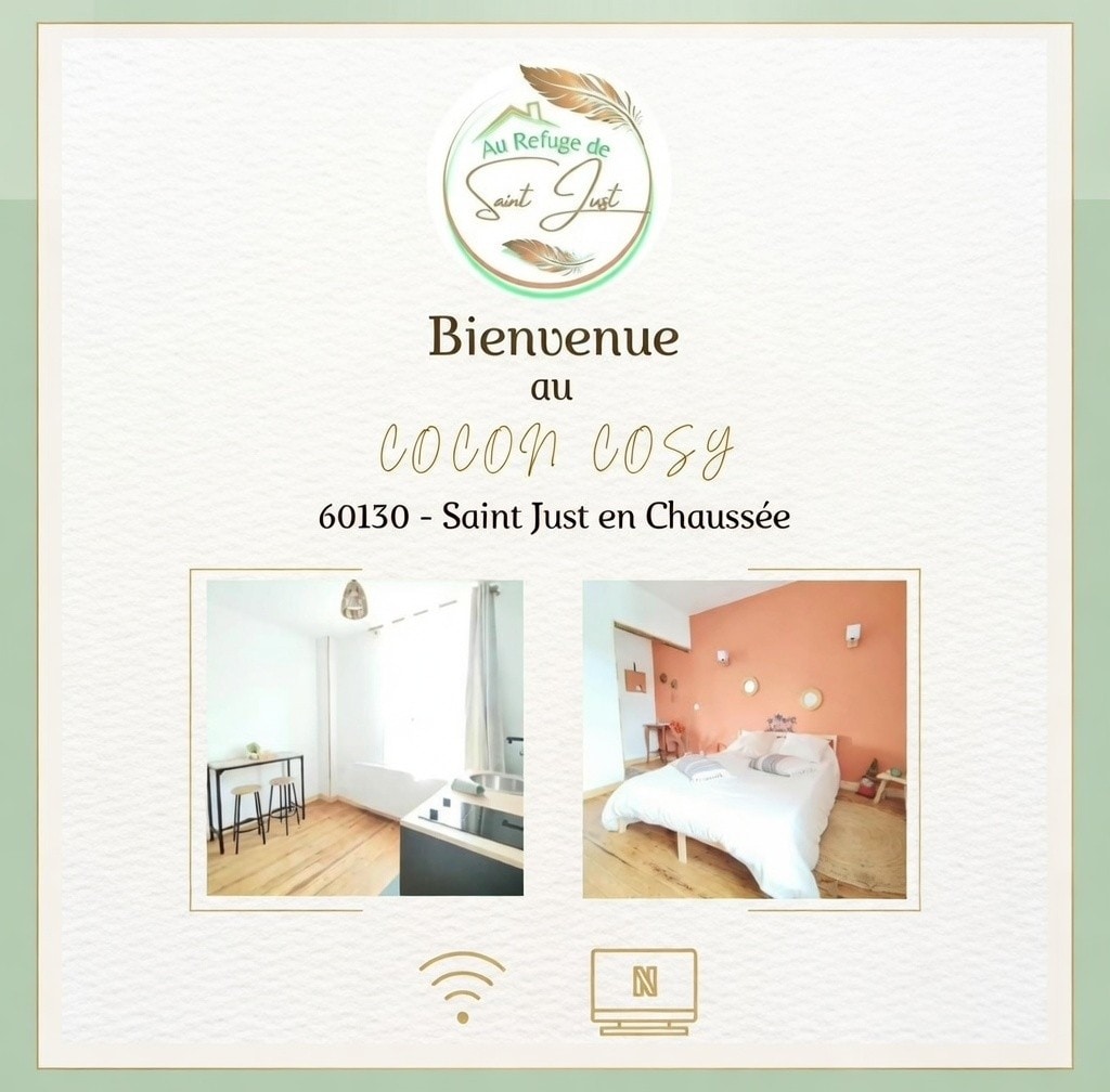 Ce logement à l'étage Lumineux et cosy rénové à neuf vous accueille pour un séjour confortable à St Just en Chaussée. Idéal pour une escapade, un week-end reposant ou un déplacement professionnel. 🚄À seulement 5 à 10 min à pied de la gare et des commerces, il offre un accès facile aux commodités. Doté de la fibre pour rester connecté, tout est pensé pour votre bien-être et votre tranquillité. 😊 ☕ Dès votre arrivée, vous serez accueilli avec un café et un thé pour un moment chaleureux.🤗