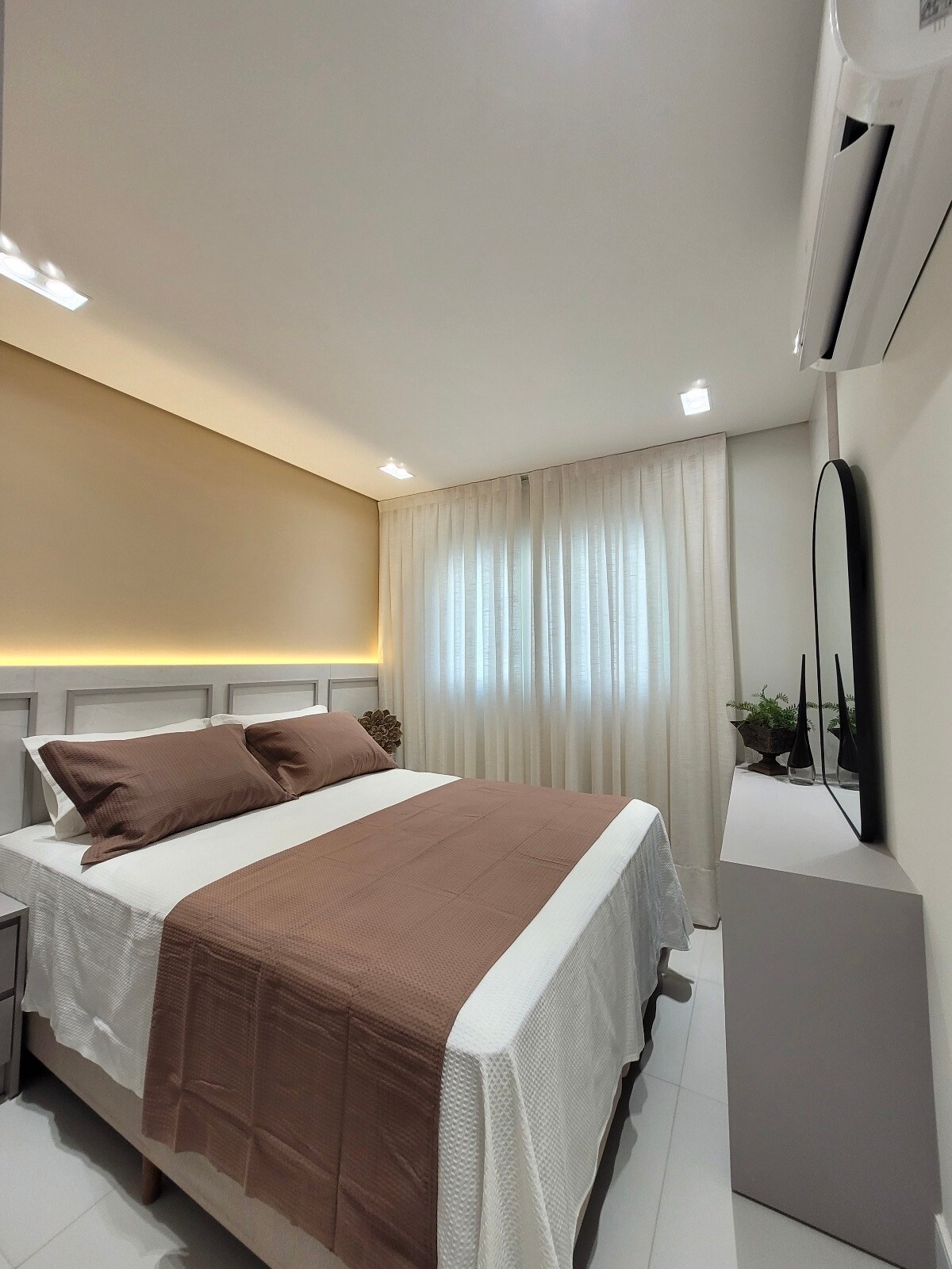 Bel appartement meublé avec goût, entièrement climatisé. Il dispose de 75m² avec un balcon fermé et une vue latérale sur la mer. Suite avec lit queen size plus une chambre avec lit double, toutes deux avec Smart TV. Cuisine, salon et balcon avec barbecue intégrés dans un concept ouvert. La cuisine est équipée de meubles planifiés, cuisinière, four électrique, réfrigérateur et micro-ondes, en plus des autres ustensiles. Buanderie avec lave-linge et sèche-linge à disposition.