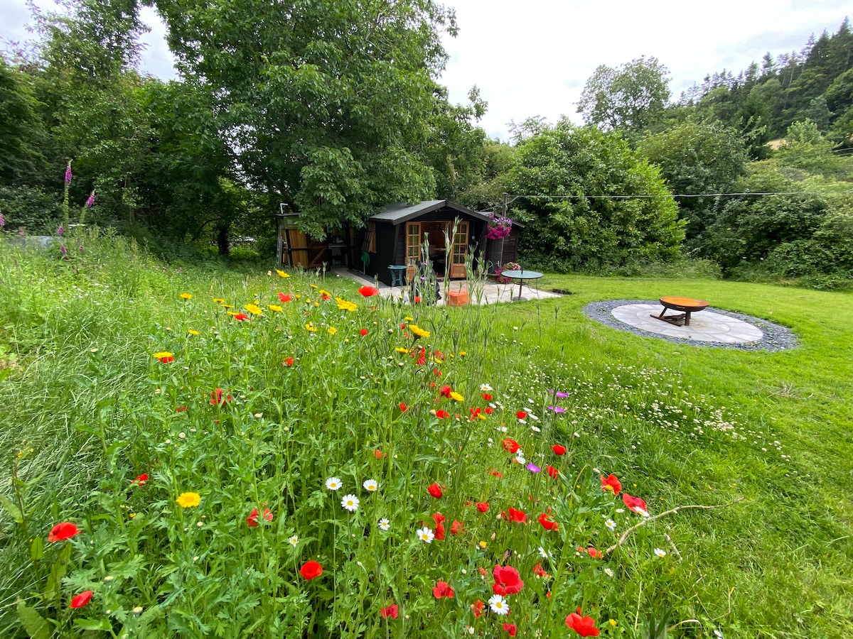 Autonome avec une salle d'eau/WC équipée et une cuisine compacte ; lit King Size avec rangement. Petit espace salon donnant sur la terrasse qui surplombe un petit ruisseau qui attire tous les types d'animaux sauvages. Détendez-vous dans le jacuzzi spa chauffé au gaz qui peut être utilisé toute l'année par tous les temps. Situées dans un paddock d'un demi-acre, les huttes Min yr Afon sont à la périphérie du village, à proximité des chemins de campagne. Évadez-vous et découvrez la paix et la tranquillité... un petit coin de paradis !