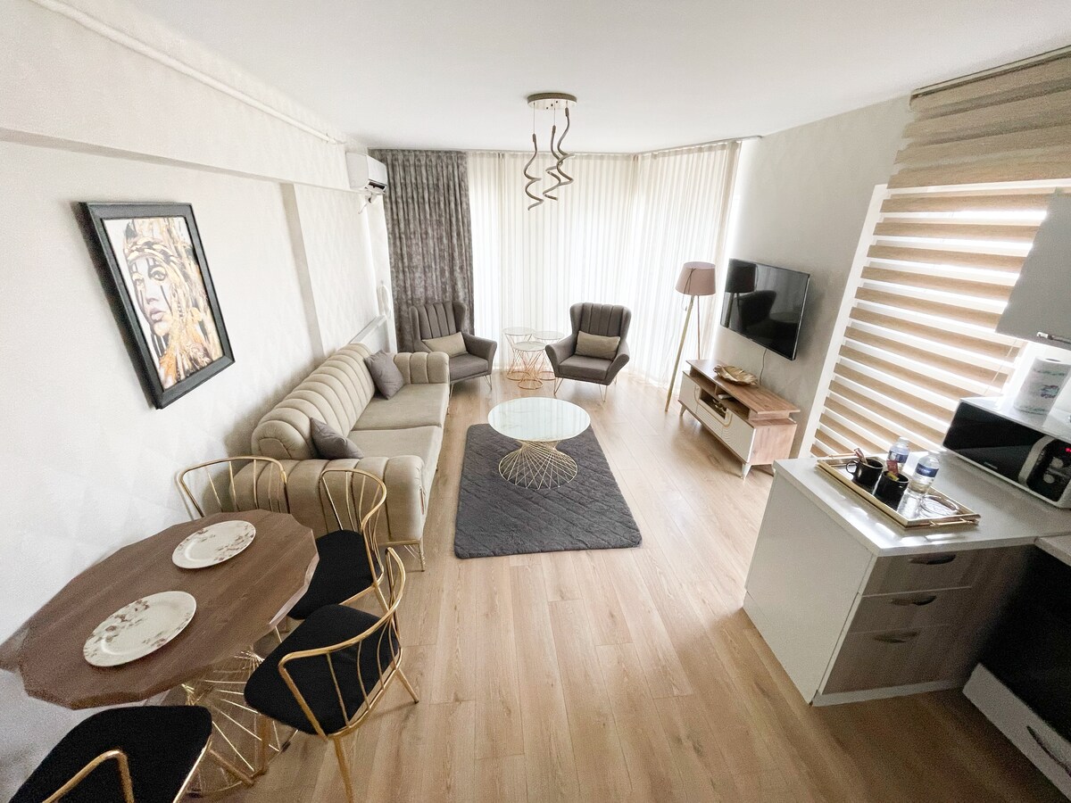 Un séjour agréable vous attend dans notre appartement de deux chambres confortable et pratique. Notre appartement, qui convient aux séjours de vacances comme aux voyages d'affaires, dispose de lits doubles, d'un lave-linge, de la climatisation, d'une cuisinière, d'ustensiles de cuisine, d'une télévision 50 pouces et d'une connexion Internet haut débit. Notre appartement est situé dans un complexe sécurisé, et il y a un supermarché et des endroits où vous pouvez répondre à vos besoins quotidiens à proximité. Vous pouvez profiter d'un séjour sans souci et confortable dans ce logement bien équipé.