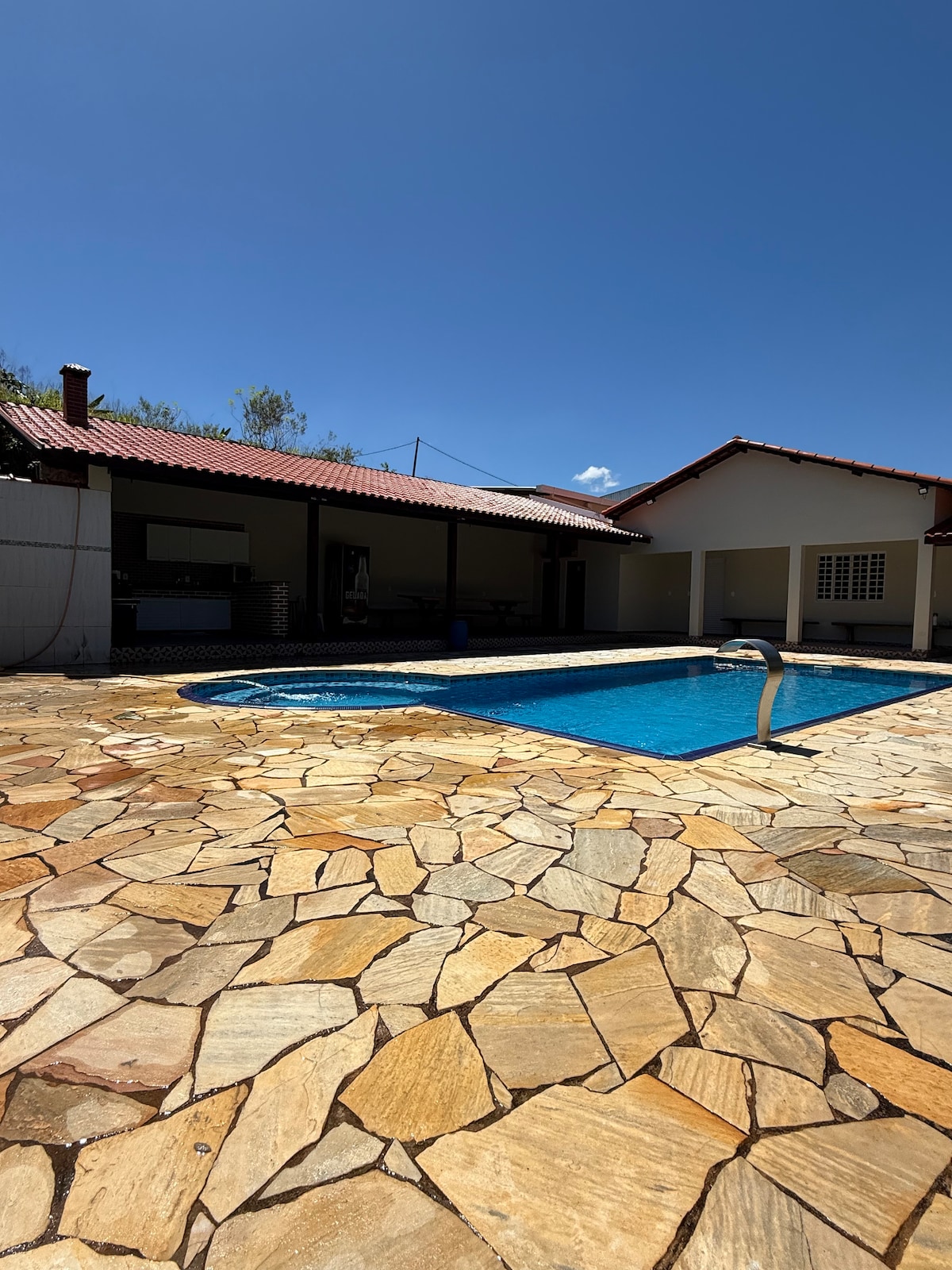 Chácara Paraíso à Estiva-MG. Belle ferme pouvant accueillir jusqu'à 24 personnes (enfants inclus), avec 6 suites disponibles, 2 cuisines, une salle de bal et une salle de jeux. Piscine pour adultes et enfants, terrain de football, aire de jeux et bien plus de plaisir pour votre famille et vos amis. Soyez émerveillé par les paysages, profitez du contact avec la nature et oubliez la folie de la grande ville...