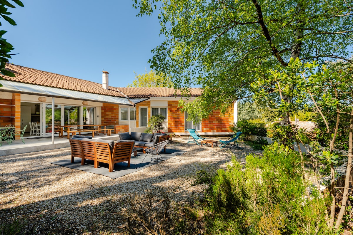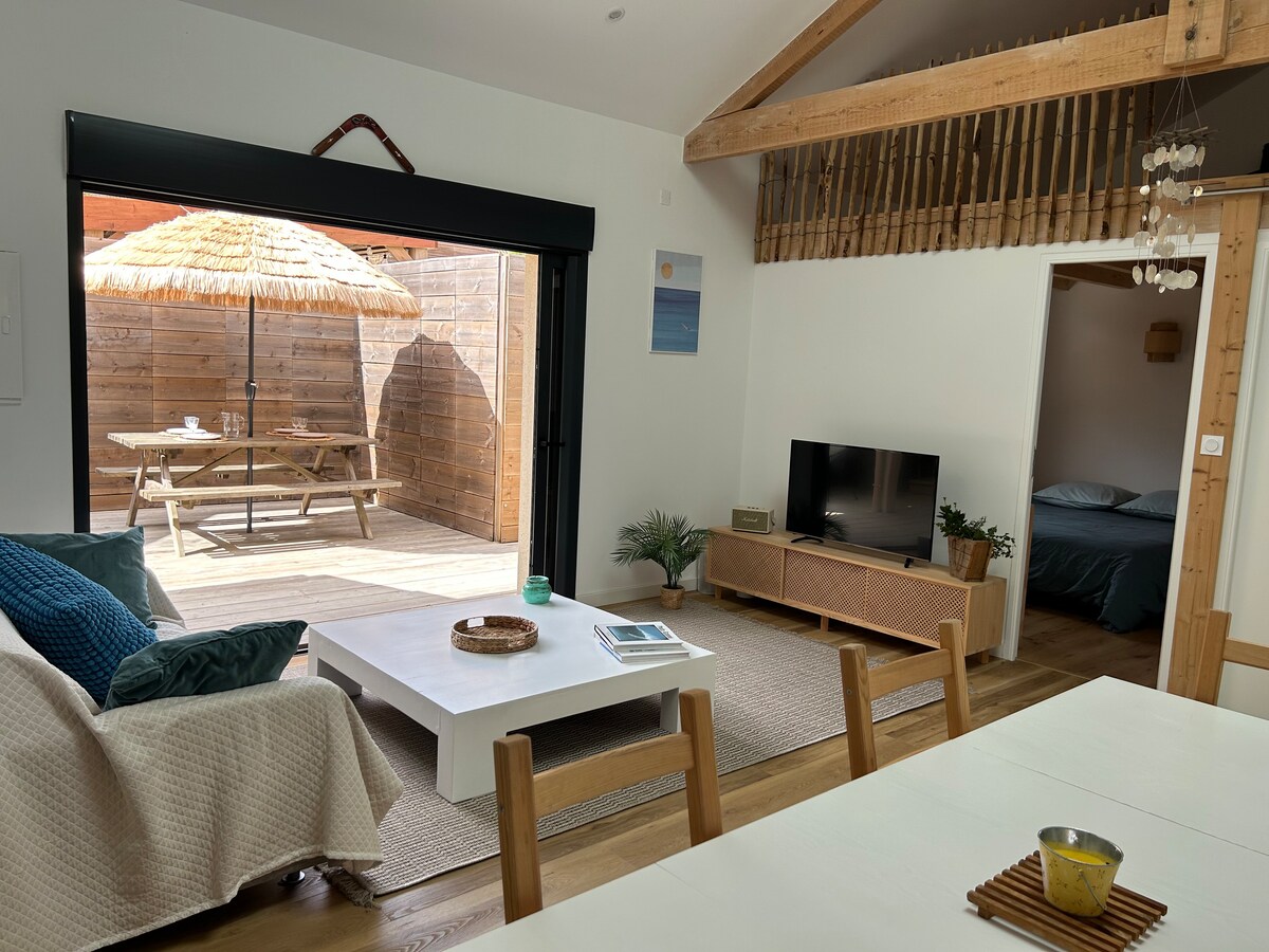 Niché sous les chênes et au calme nous vous invitons à découvrir notre charmant studio neuf de 40m2, idéalement situé entre Arcachon et le Cap Ferret. Ce studio, à la fois spacieux et confortable, est équipé d’une cuisine moderne, d’une climatisation réversible et d'un espace de travail équipé d’une connexion fibre. Une place de parking est à votre disposition avec possibilité de recharger votre véhicule électrique.