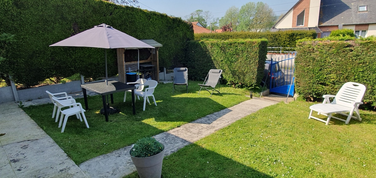 Bienvenue à Eu au ❤️ des 3 Villes Sœurs, ville royale connue pour son château, sa collégiale et son patrimoine, Le Tréport, port de pêche animé avec ses falaises Mers-les-Bains charmante station balnéaire aux portes de la Baie de Somme. Notre propriété se trouve directement sur la piste cyclable, idéale pour les amateurs de nature et de balades. Nous sommes entre ville et campagne : d’un côté, vous pouvez flâner le long du fleuve , de l’autre rejoindre à pied le centre-ville à seulement 600m.