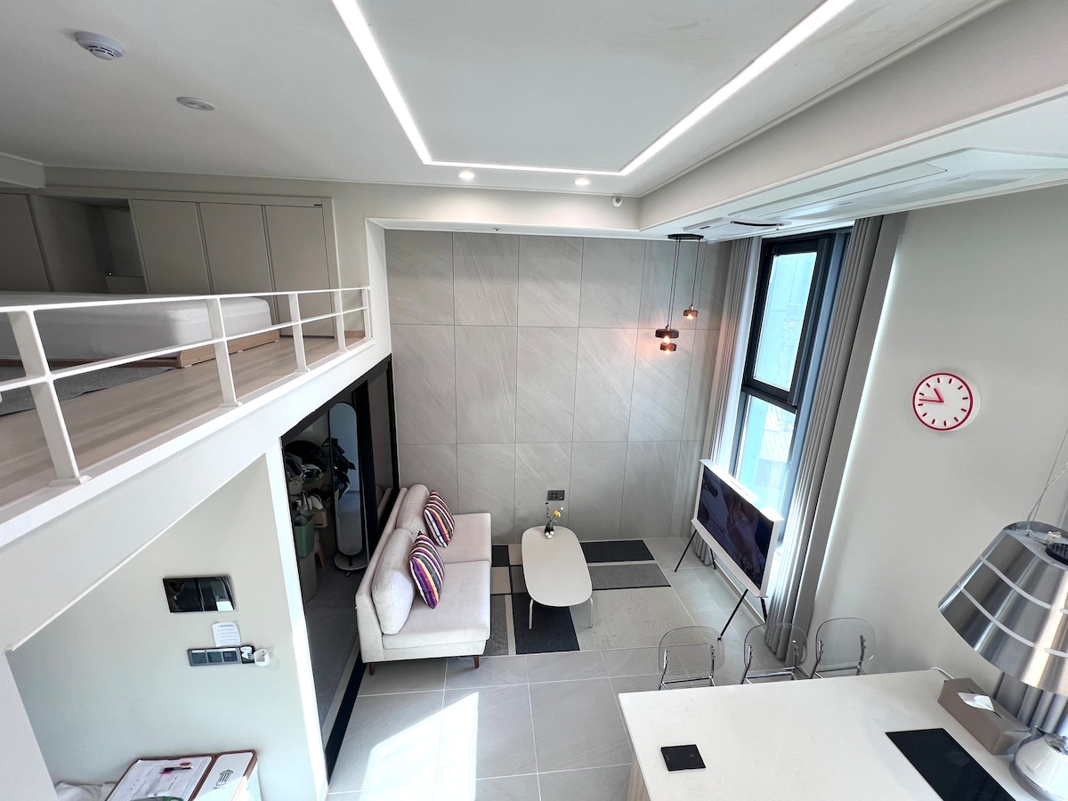 WECO STAY Chungmuro est niché dans un quartier aux ambiances tendance et rétro d'Euljiro. L'espace allie design élégant et confortable, offrant calme et caractère. C'est également un endroit idéal à explorer à pied, avec de charmantes ruelles usées par le temps. - Près des meilleurs endroits de Séoul comme Myeongdong, Euljiro, Namsan et Dongdaemun - À 3 minutes à pied de la sortie 7 de la station Chungmuro (lignes 3 et 4) - Depuis l'aéroport, prenez le bus 6001 jusqu'à la station Chungmuro, sortie 2 (6 min à pied)