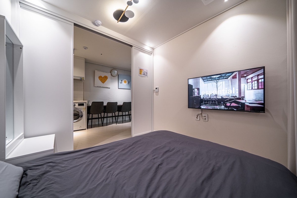 Au cœur de Séoul, où la ville brille de mille feux la nuit : bienvenue à Dongdaemun. Contrairement aux rues animées à l'extérieur, notre logement offre un séjour paisible et confortable avec des tons chauds de bois et un éclairage doux : l'endroit idéal pour se détendre après une longue journée. - 10-15 minutes à pied des centres commerciaux DDP et Doota - 5-10 min à pied de la sortie 6 (ou sortie 4 pour l'ascenseur) de la station Dongdaemun History & Culture Park (lignes 2, 4, 5) - Depuis l'aéroport : prendre le bus 6001 jusqu'à l'arrêt Baiton Hotel (2 à 5 min à pied)