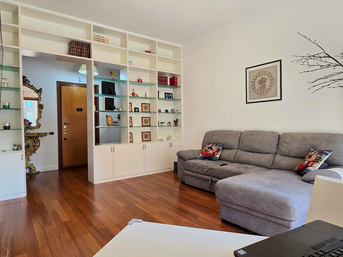 Appartement élégant avec tout le confort. Parfait pour un séjour d'affaires ou de loisirs. J'espère que vous passerez un séjour confortable dans ma confortable maison de Rome. Il comprend un excellent espace de travail pour vous aider à atteindre vos objectifs de travail. Après une longue journée de travail ou d'exploration de Rome, vous pourrez vous détendre en regardant vos films ou séries préférés sur la grande télévision. Restez connecté avec le Wi-Fi ultra-rapide dans chaque pièce. Vous pourrez profiter du quartier calme sur le balcon pendant les nuits d'été pour le dîner.