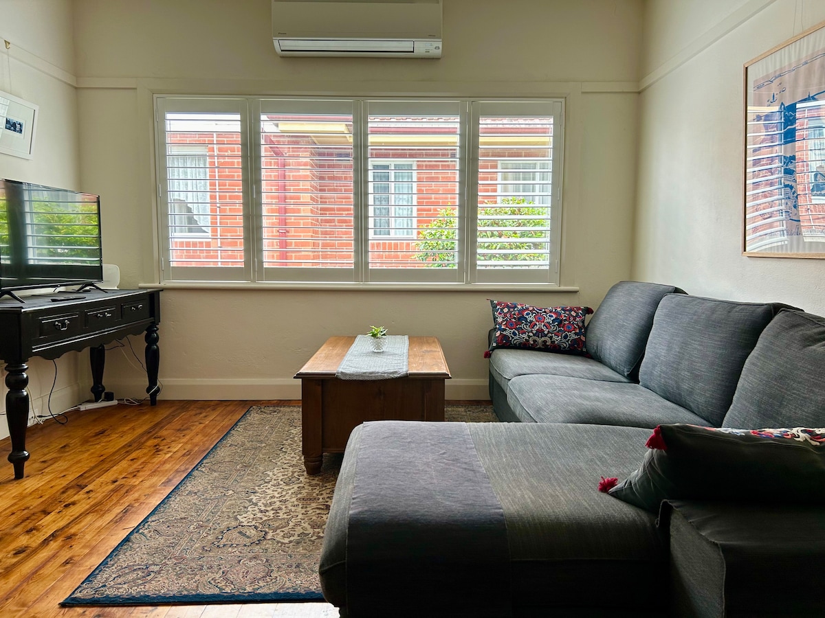 Détendez-vous dans ce studio calme et élégant. Récemment rénové en 2022, le salon/chambre/cuisine partagé avec salle de bains privative et buanderie/garage, ce studio est parfait pour votre séjour de milieu de semaine ou de week-end à Bathurst. Situé dans un quartier paisible à proximité du célèbre circuit de course du mont Panorama (1 km à pied) et également à proximité du CBD (2 km), ce studio a tout et ne vous décevra pas !