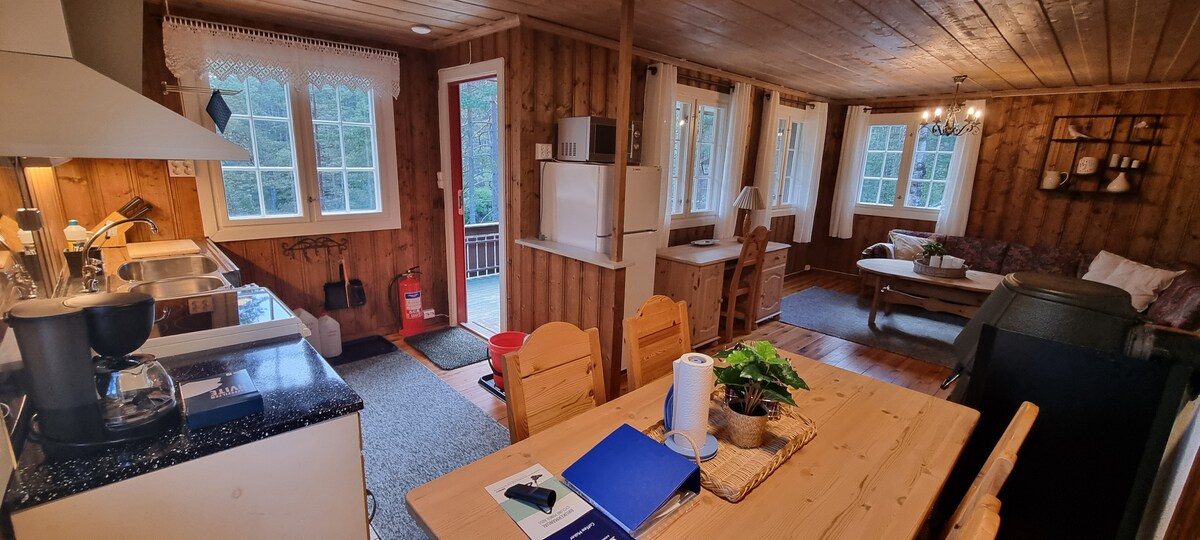 Petite cabane avec poêle à bois près d'une petite rivière/ruisseau. Emplacement pittoresque. Wagon dispose d'un panneau solaire pour la lumière et d'un poêle à bois pour le chauffage. Cheminée à l'extérieur. Possibilité également de louer un jacuzzi et un sauna en forme de tonneau/sauna moyennant un supplément. Dans le sauna, vous pouvez vous laver à l'eau chaude. Bateau à rames prêté gratuitement. L'endroit est idéal pour ceux qui aiment la nature avec un hébergement standard simple. En automne/hiver, de 9/15 à 5/1 environ, la caravane est accompagnée de sa propre cuisine extérieure privée. Chiens admis. Centre de ski de Bortelid à 15 km.