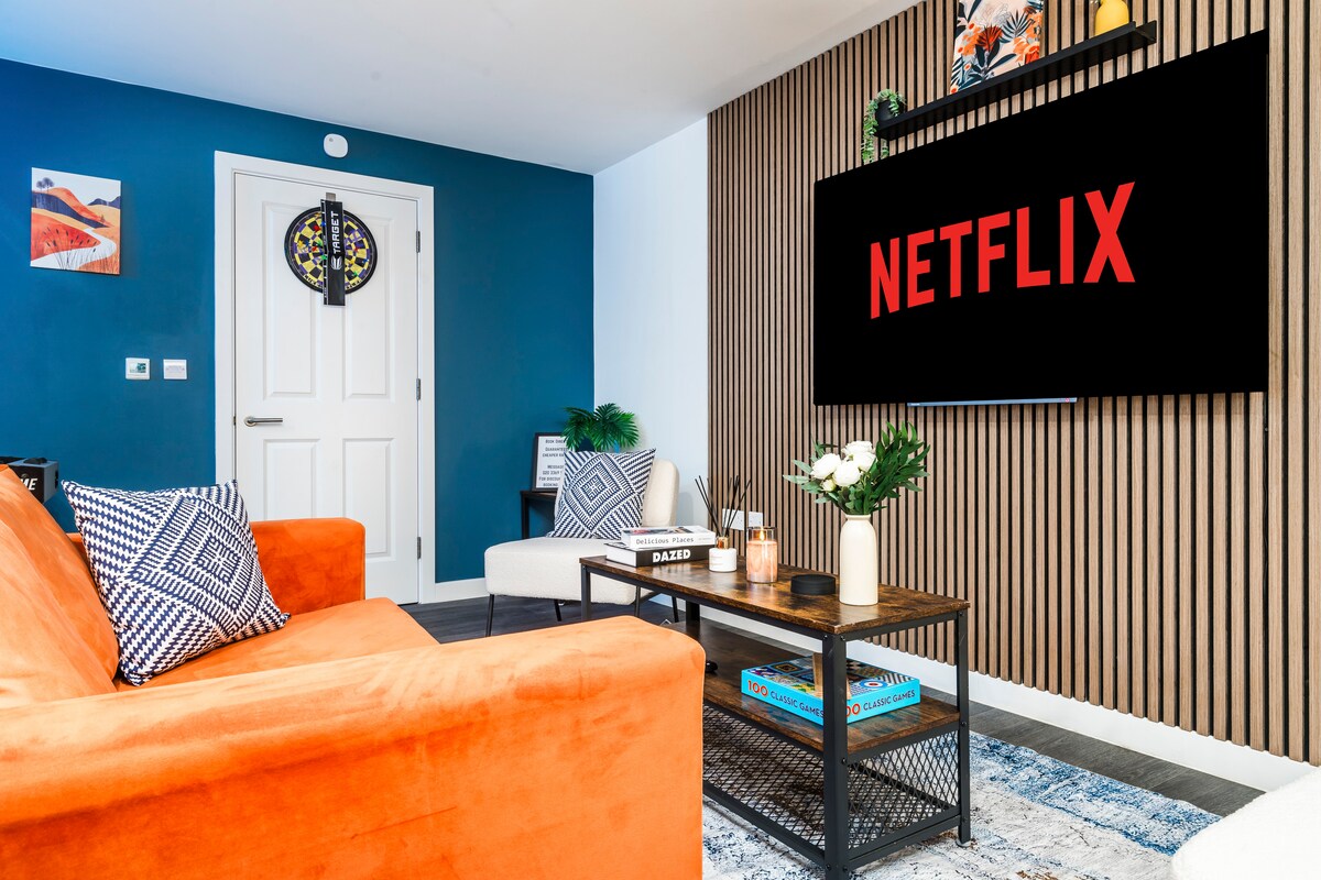 Restez au top. Pensez inspiré. Vivez ExCeL. Découvrez la vie londonienne avec des vues spectaculaires dans cet appartement moderne mais confortable de 2 chambres à côté d'ExCeL, où le paysage urbain vole la vedette Vue sur la Tamise et le téléphérique depuis le balcon et les baies vitrées. À 3 minutes d'ExCeL et à 1 minute des transports, idéal pour les voyages d'affaires et les séjours en ville. Lits haut de gamme, stores occultants, connexion Wi-Fi rapide, espace de travail dédié, cuisine entièrement équipée et télévision connectée. Accès facile à Canary Wharf, The O2 et Central London
