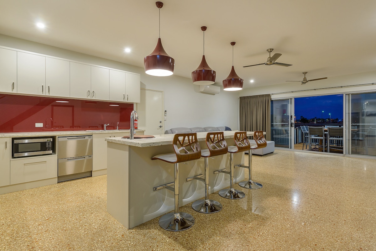 Bienvenue dans votre retraite Exmouth. • Maison de ville au bord du canal avec ponton privé • Balcon sur tout le pourtour avec vue sur l'eau • Peut accueillir confortablement 6 personnes • Salon ouvert spacieux avec télévision 85 pouces • Emplacement privilégié dans la marina d'Exmouth Réveillez-vous sur l'eau et profitez d'un séjour côtier relaxant dans cette toute nouvelle maison de ville moderne. Conçu pour le confort et la simplicité de vie, c’est le pied-à-terre idéal pour les familles, les couples ou les groupes qui souhaitent explorer Exmouth et le récif de Ningaloo.