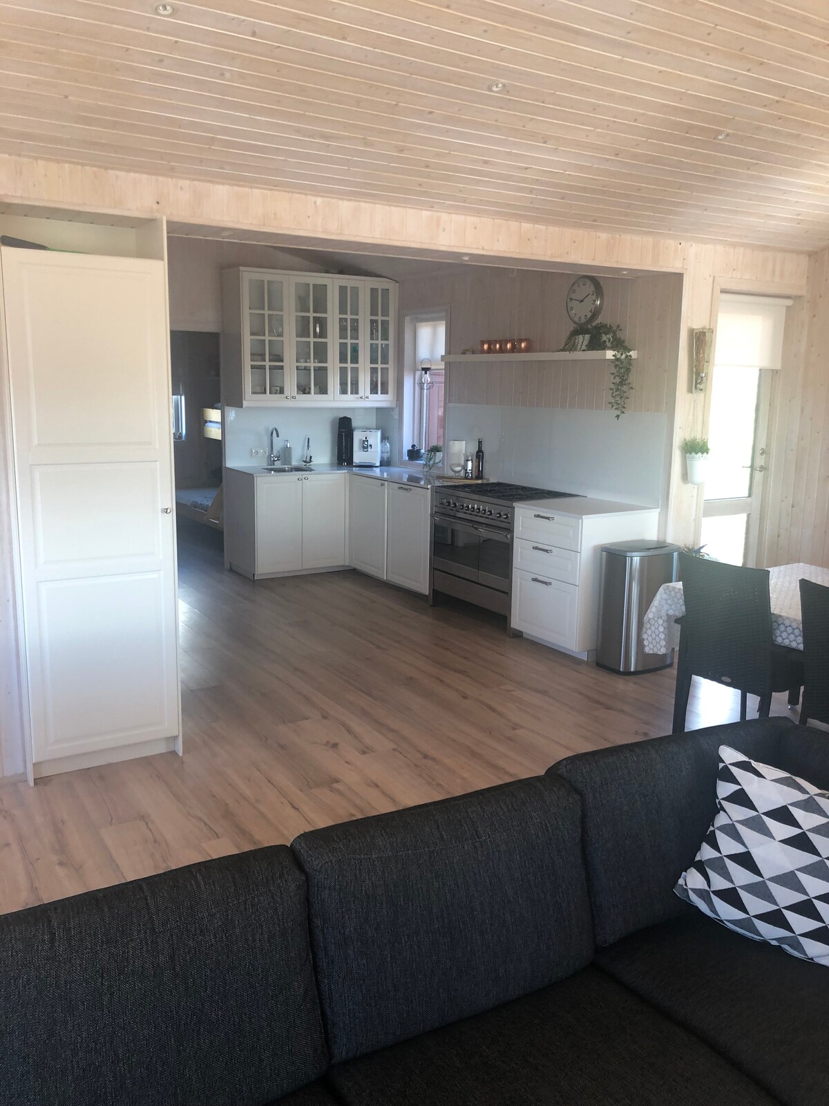 Chambre 1: 3 lits simples - Chambre 2: 3 lits simples - Chambre 3: 1 très grand lit double - Salon : 1 canapé-lit Équipements de la maison : vue sur la mer, vue sur la montagne, vue imprenable, radio, coin salon, ventilateur, entrée privée, canapé, parquet, douche, salle de bain partagée, toilettes, salle de bain, papier toilette, kitchenette, réfrigérateur, micro-ondes, coin repas, bouilloire électrique, ustensiles de cuisine, four, plaque de cuisson, grille-pain, barbecue, cafetière, table à manger, chaise haute pour enfants, serviettes, linge de maison, Upp