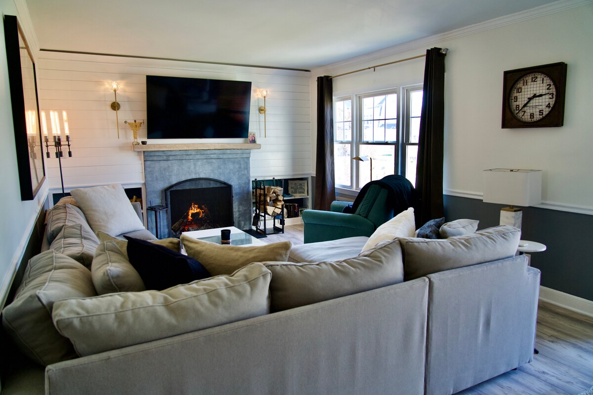 Trois décennies de rénovations de bon goût — dont beaucoup utilisent des matériaux réutilisés — ont fait de cette grange convertie un lieu digne d'un magazine. En retrait de la route sur 1 acre de terrain boisé avec un ruisseau, cette maison moderne idéalement située conserve son allure rustique. Avec des plafonds de 30 pieds, des poutres apparentes en bois, des dizaines de fenêtres, un éventail de meubles éclectiques et un piano à queue, le charme de la grange est immédiatement évident. Parfait pour des escapades romantiques, des retraites, des réunions de famille et plus encore.