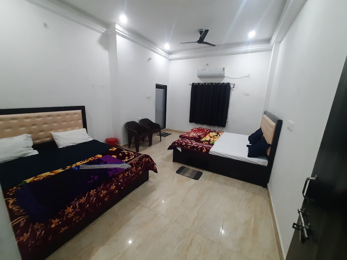 Détendez-vous en famille dans ce logement paisible. Le logement est à distance de marche de Shri Ram Mandir et à 500 m de la gare d'Ayodhya Dham et à 6,5 km de l'aéroport. Un logement familial est disponible avec cuisine. De l'eau potable pure et de l'électricité à nouveau. Éventail du petit-déjeuner, du déjeuner et du dîner. Un service de ramassage et de dépôt payant est également disponible.