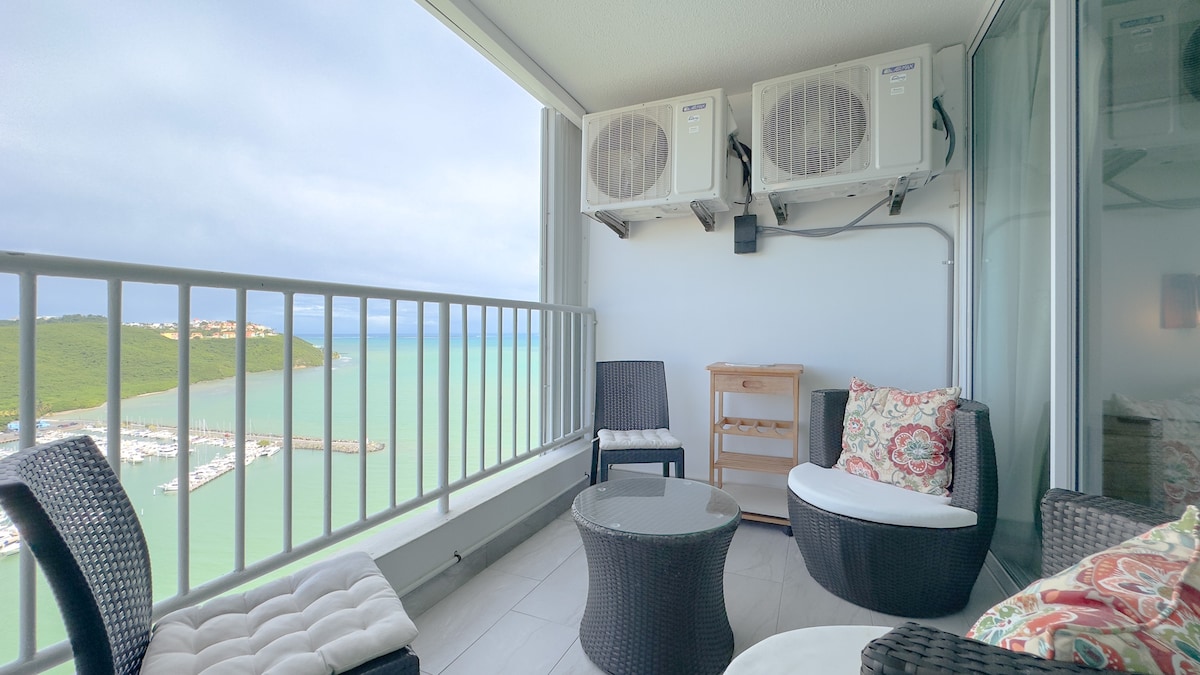 Bienvenue dans notre propriété à Dos Marinas I. Détendez-vous dans cet appartement en bord de mer. Une vue à un million de dollars sur Icacos, Culebra, Vieques et Palomino depuis le balcon. Cet appartement est un endroit pour vous retirer, vous détendre, vous réinitialiser et vous raviver. Situé à proximité de quatre marinas, boutiques et restaurants. L'immeuble dispose d'une piscine olympique, de belvédères, de terrains de basket-ball et de courts de tennis. Une Chambre entièrement équipée avec climatisation. Réveillez-vous avec la brise et le son de l'océan. Remarque : la climatisation est uniquement dans la chambre.