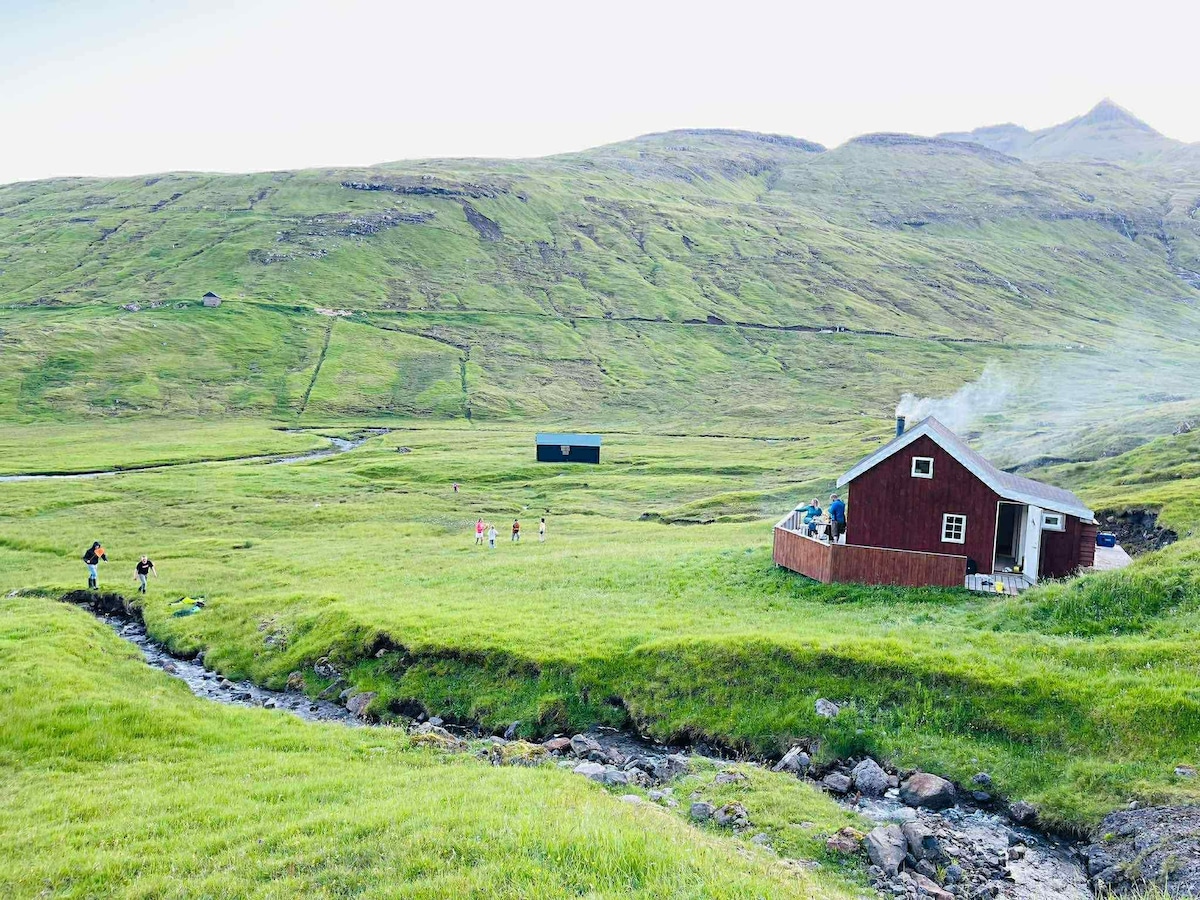 Unikt sommerhus med fantastisk udsigt over de omkring liggende øer. Der er ca 25 km fra både lufthavnen og Torshavn. Huset ligger ude i den fri natur i smukke omgivelser tilbagetrukket fra offentlig vej. Der er ikke direkte adgang med bil til huset, der er en frisk tur på ca 100 meter at gå opad en skråning til huset. Du må bære kufferten op til hytten. Det er et perfekt sted til at slappe af og nyde naturen. Huset er beliggende ved siden af en å, som skaber en hyggelig stemning.