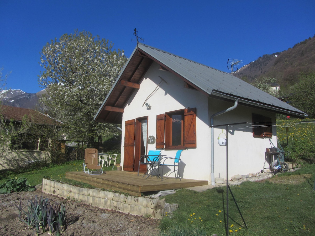 Micro-maison bien équipée , avec mezzanine sous le toit servant de chambre. Vous bénéficiez d'une superbe vue sur les montagnes depuis sa terrasse, d'où vous pourrez même voir le Mont Blanc. Nombreuses activités: randonnées, accrobranches, vélos, visites touristiques, baignades en lacs.
