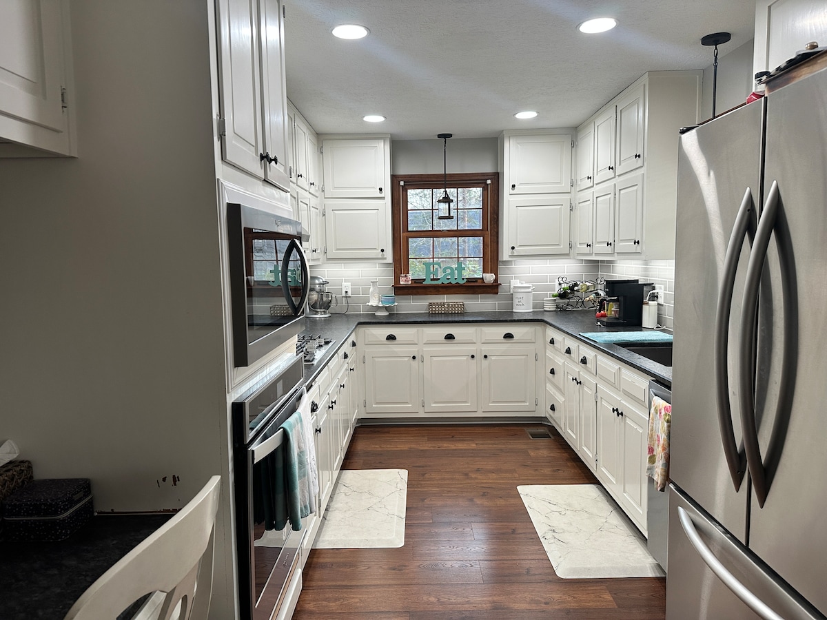 Kick back and relax in this calm, stylish space. Beautifully finished basement in the heart of Fayetteville - minutes from Trilith Studios, close to the airport and short drive to Atlanta Motor Speedway. Space includes fully appointed kitchen with stainless steel appliances, dining table that converts to a pool table, covered deck with hot tub, grill and outdoor dining table, spacious bathroom, and gym with equipment. And the best part, a spacious theater room with leather recliners!