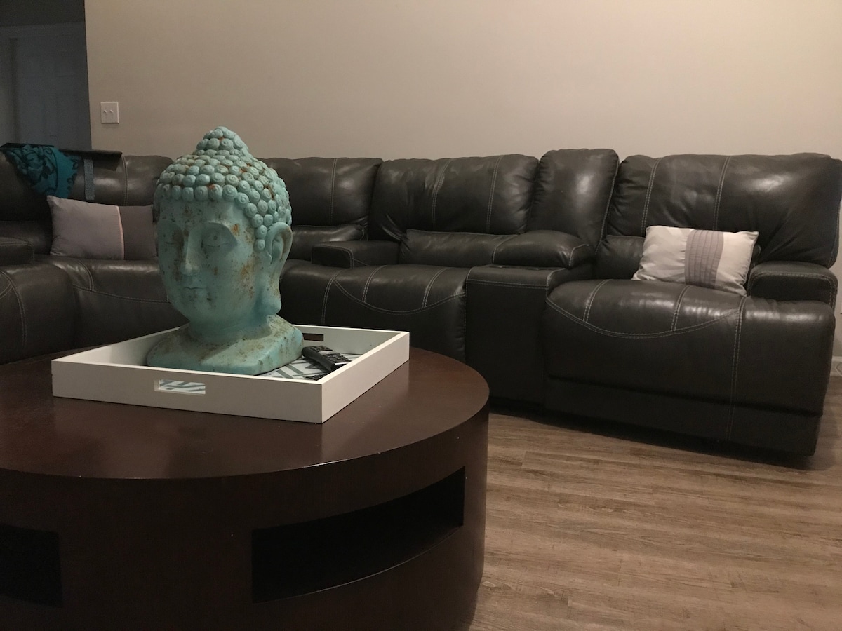 Détendez-vous dans cette maison calme et élégante de 4 chambres. À 15 min de l'aéroport international d'Atlanta et à moins de l'équitation, du shopping et de grands restaurants. Prenez un verre et détendez-vous dans mon bar et écoutez un excellent vinyle avant de vous rendre à la ville d'Atlanta !