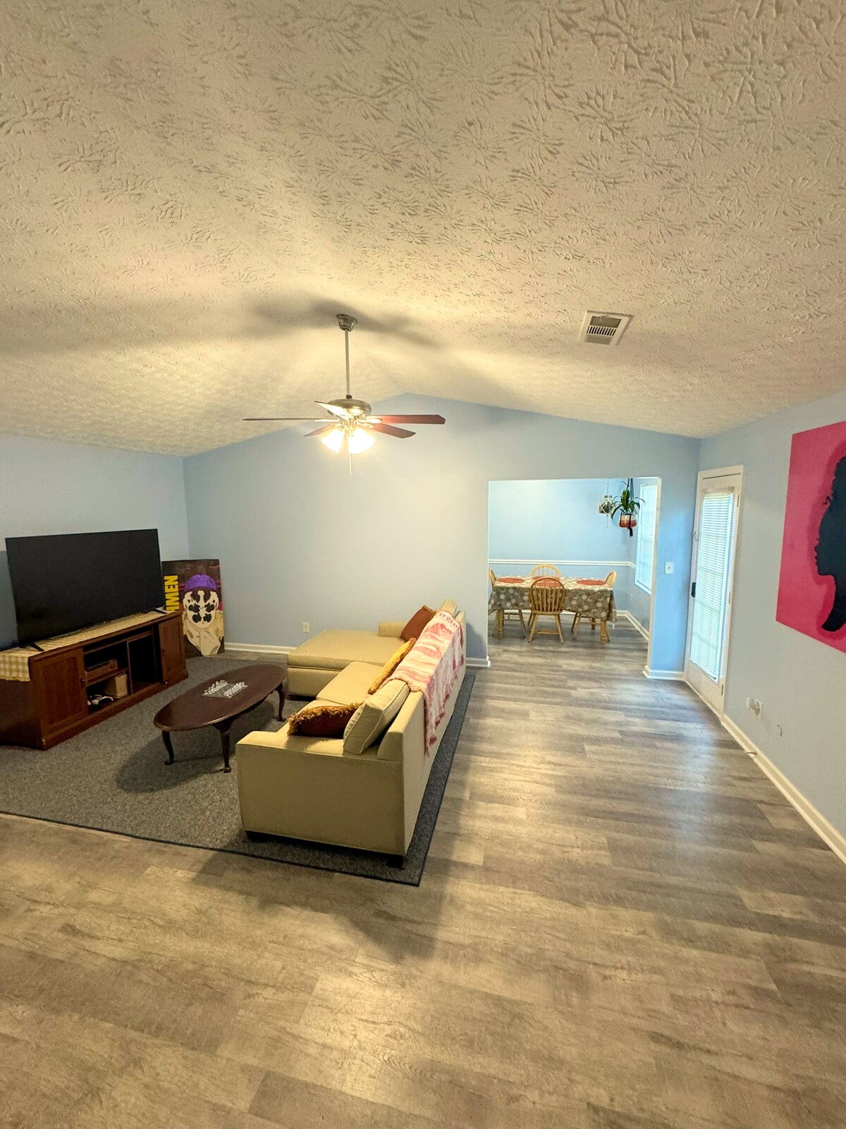 Ma maison est très confortable et propre, c'est une maison de ville en copropriété, les deux télévisions sont sur le mur J'ai un brasero et Comcast tous deux installés Ma maison est intelligente, ce qui signifie que vous avez aussi un code, saisissez également un livre qui sera le seul, je fournirai également le code. J'aimerais également avoir une copie de la pièce d'identité à l'arrivée, un besoin aussi de rencontrer la même personne qui a réservé en ligne que le nom de la réservation doit correspondre Veuillez apporter une copie de la carte d'identité à l'arrivée. Je m'attends à ce que la maison soit également nettoyée une fois le départ
