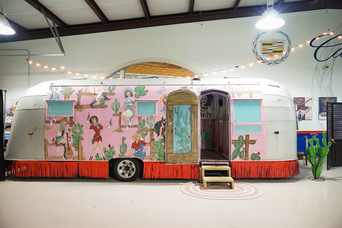 Peekaboo Pinkie, vintage camper inside Glamp Inn