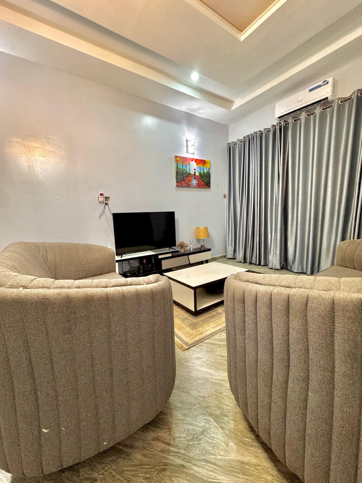 Profitez d'une expérience élégante dans ce logement central. Chez vous, loin de chez vous, avec une décoration et des équipements de pointe pour rendre votre séjour mémorable. Les installations comprennent : - Playщ 5 - Wi-Fi - proximité des principaux endroits . À 2 minutes en voiture de Maitama et à 5 minutes en voiture de Wuse 2. - Électricité 24h/24 avec onduleur et générateur - 2 balcons -2 salons - Téléviseurs intelligents dans toutes les chambres et salons.