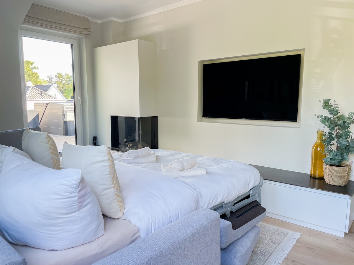 Notre petit appartement élégamment décoré, se réjouit de vous accueillir en tant qu'invités ! Le salon/chambre à coucher combiné est très moderne et joliment meublé. La zone de couchage dispose d'un grand lit double, d'une télévision, d'une très bonne connexion Wi-Fi, d'un canapé d'angle confortable. La grande cuisine équipée dispose d'un four, d'une plaque de cuisson à induction et d'un lave-vaisselle, d'un grand réfrigérateur incl. Congélateur et nombreux ustensiles de cuisine.