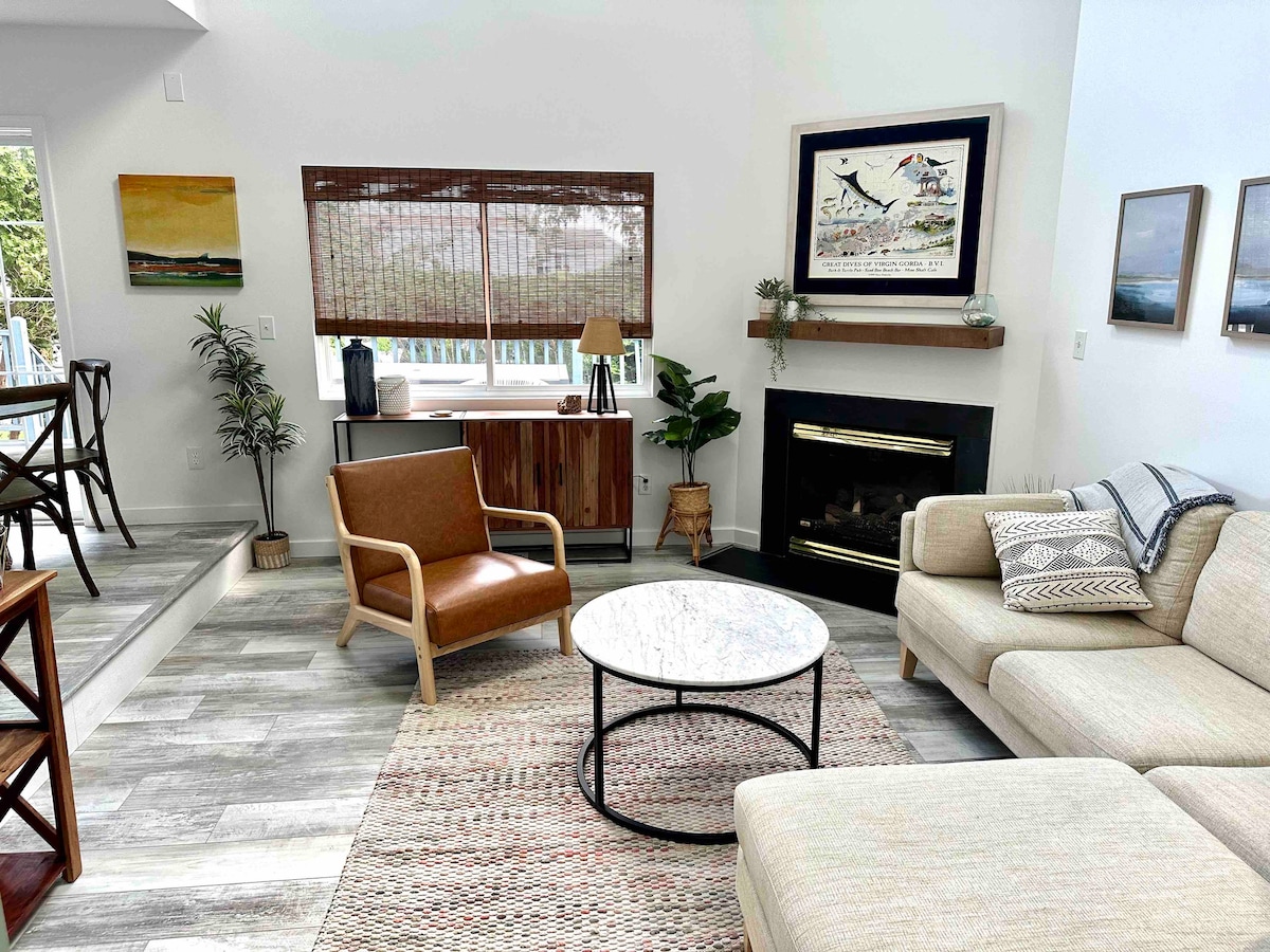 Détendez-vous dans cette suite d'hôtes d'inspiration côtière bohème du côté de l'océan. Dans la suite king size privée de Sea Dunes, le surf et le sable sont à quelques pas. Préparez-vous à emporter votre glacière et profitez d'une journée au soleil sur cette belle plage privée adaptée aux chiens. Sea Dunes est situé sur l'île de Fenwick et niché entre des parcs naturels d'État protégés. Juste un court séjour en voiture dans un port de plaisance avec des sports nautiques, des aventures en kayak sur la baie, des restaurants locaux, des marchés agricoles et des magasins.