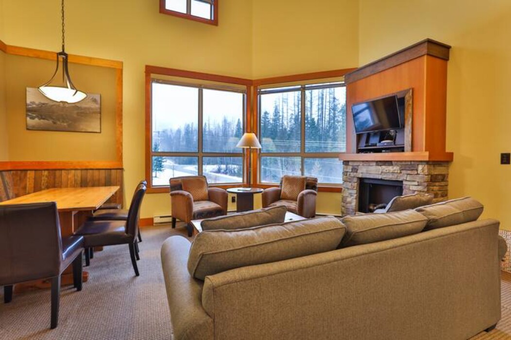 Certaines des plus belles vues sur les pistes de ski de Fernie! Avec de grandes baies vitrées, vous pourrez profiter du soleil éblouissant du soir dans la chambre. Profitez du lit Queen Size confortable, ainsi que des planchers chauffants dans l'entrée et la salle de bain. Vous aurez pleinement accès à la cuisine, à la salle à manger et au bar du petit-déjeuner. Détendez-vous près de la cheminée le soir et regardez vos films préférés sur la télévision à écran plat.