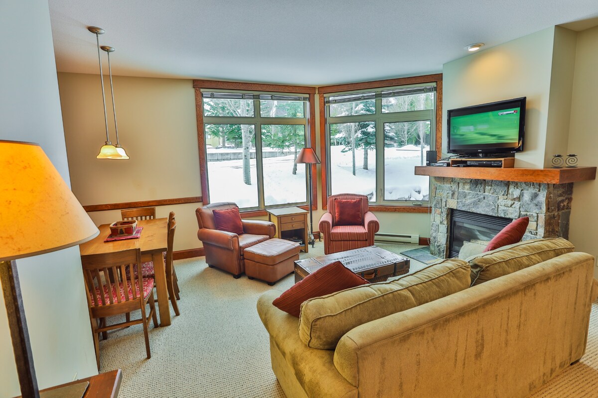 Un condo d'une chambre entièrement équipé à 5 minutes de la station de ski, à 5 minutes de la ville, des sentiers de vélo de montagne à proximité. C'est l'endroit idéal pour organiser vos aventures. Activités récréatives à quelques minutes : pêche à la mouche de classe mondiale, golf, randonnée pédestre, kayak, raquette, VTT, motoneige... Piscine, jacuzzi, hammam et salle d'exercice dans le complexe. Parking souterrain chauffé, Wi-Fi, câble. Lave-linge/sèche-linge dans le logement.