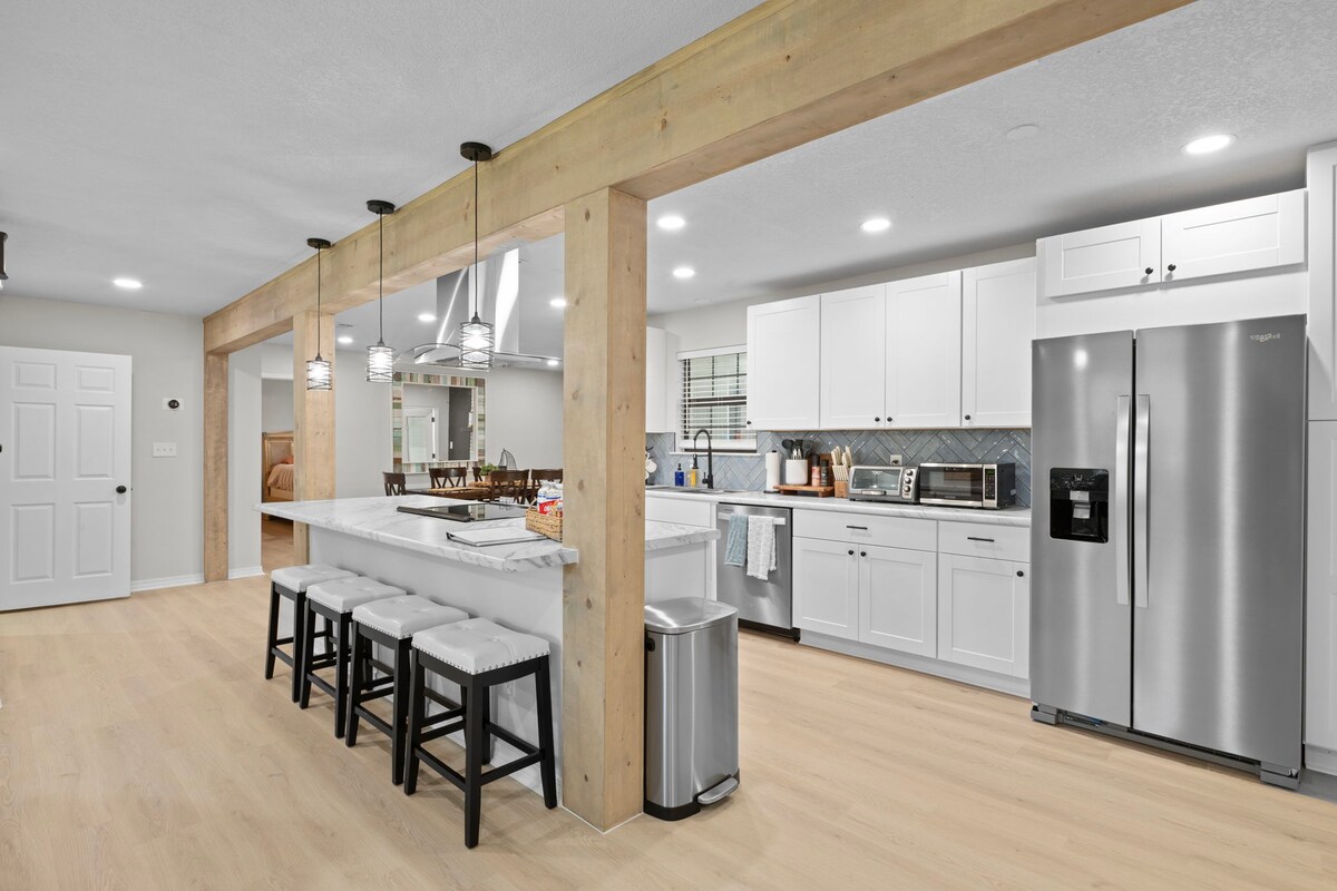 Pensacola Dolphin Retreat est une maison récemment rénovée, entièrement meublée, de trois chambres et deux salles de bain, avec un porche arrière grillagé, une terrasse ouverte avec un barbecue qui donne sur une cour arrière boisée. Accessible directement depuis l'Interstate 10, le quartier calme offre un accès pratique à l'aéroport, aux centres commerciaux, aux universités locales, aux hôpitaux et à d'autres entités professionnelles. Les plages sont facilement accessibles. Les services publics sont inclus dans cette offre, à savoir la télévision par câble, l'Internet haut débit et le wifi.