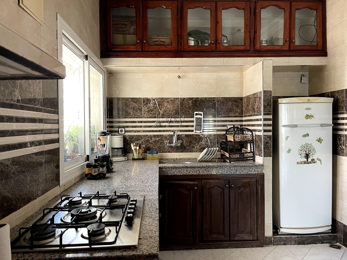 Welcome to our stylish and cozy Boho condo, designed for comfort, calm, and a warm stay in Fez. Located in a quiet residential area, the apartment is just 15 minutes (6 km) from the Old Medina, making it perfect for exploring the city while enjoying peace and privacy. The condo features two comfortable bedrooms, a bright living area, a fully equipped kitchen, and a modern bathroom. Thoughtfully decorated with boho touches and natural tones, the space feels welcoming and relaxing after a day out.