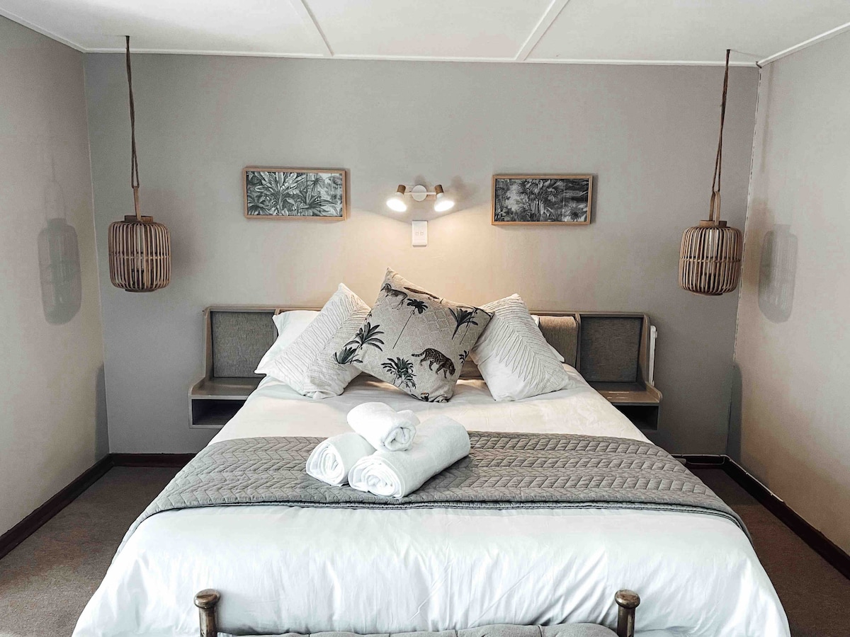 Le logement indépendant meublé est spacieux et dispose d'une chambre avec un lit queen size, d'une salle de bain et d'un espace de vie séparé avec canapé, télévision et kitchenette. Un système solaire - pas de délestage ! Un lit de camping est disponible et un lit simple peut être installé sur demande moyennant des frais supplémentaires. Toutes les commodités nécessaires pour un court séjour. Il est situé à 400 m de l'Afridome et à 2 km de la rivière/la rue Breë où vous pourrez profiter de notre belle ville avec une variété de galeries, d'antiquaires et de restaurants.
