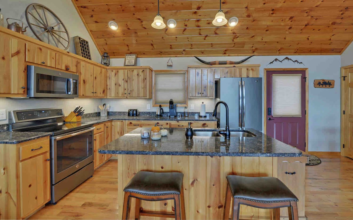 Profitez de la vue sur le lac et les montagnes dans cette oasis rénovée au milieu des arbres. Que vous soyez à la recherche d'une aventure en plein air ou d'une escapade revigorante, nous avons tout ce qu'il vous faut ! Situé sur un lac de cinq acres, profitez du quai privé et de l'utilisation de nos deux planches à pagaie et de notre canoë. Après une journée de randonnée, décompressez dans le jacuzzi et le sauna. Des tonnes d'espace pour se réunir à l'intérieur comme à l'extérieur, nous espérons que vous apprécierez tous les équipements modernes tout en vous reconnectant avec la nature. À seulement 12 minutes du centre-ville d'Ellijay !