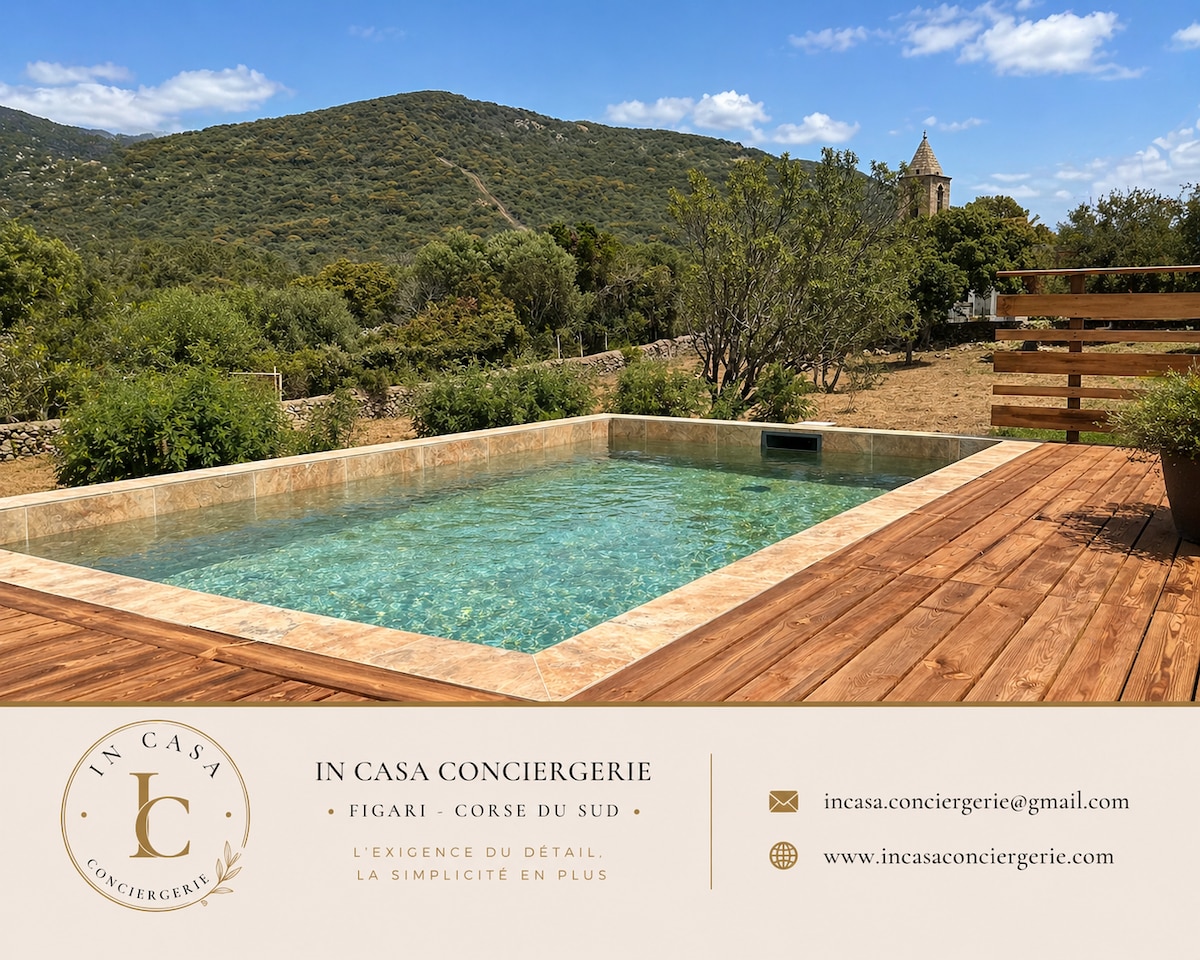 Maison traditionnelle corse inspirée des bergeries anciennes en pierre et bois. Confort moderne et piscine chauffée au coeur du maquis. Calme, vue montagne Il se compose d’une pièce à vivre avec coin cuisine, salon et cheminée et de 2 chambres avec salle d’eau. Il apporte tout le confort moderne nécessaire Idéalement situé : à mi-chemin entre Porto-Vecchio et Bonifacio, À proximité des plus belles plages de l’extrême sud de l’île. Non loin des sentiers du patrimoine et des sites incontournables