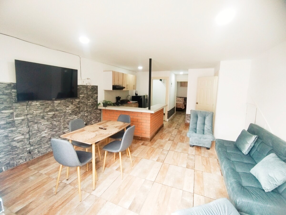 🌿 Découvrez la magie du Salento dans un appartement privé, calme et frais à partager en famille 🏡✨ Profitez d'un séjour inoubliable au cœur du Quindío, parfait à partager entre amis. Pouvant accueillir jusqu'à 6 personnes, cette belle propriété combine le style traditionnel de la région avec tout le confort moderne. 2 chambres, 1,5 salles de bains avec eau chaude, salle à manger, cuisine équipée avec tout ce dont vous avez besoin, canapé-lit, Smart TV 58" et un excellent Wi-Fi.
