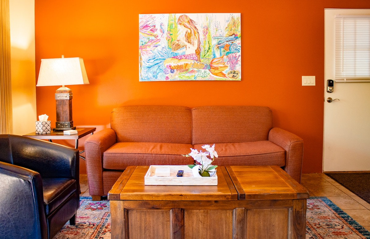 Cozy studio apartment at Bell Rock Inn in the heart of Sedona, AZ. Perfect for the modern traveler looking for a stylish and convenient retreat in one of the most breathtaking destinations in the Southwest. Live the Sedona dream in this charming space with all the comforts of home. Our studio features a King size bed, 1 bathroom, a Kitchenette, and a spacious living area with a sofabed. Sleeps up to 4 guests.