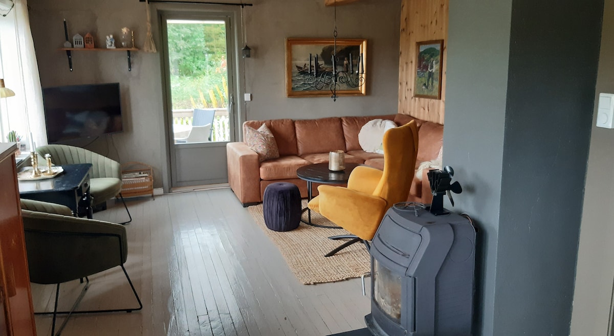 Koselig hytte v/sjøen. Fantastisk utsikt mot havet