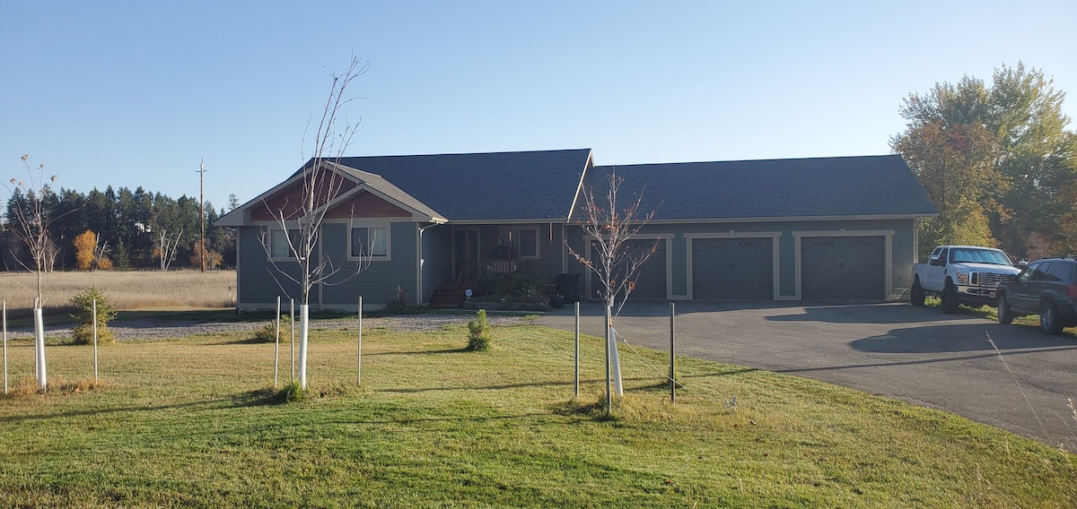 Situé sur 10 acres au cœur de la campagne pastorale de Creston. Occupation maximale de 4 personnes. Il y a une descente publique pour bateau/pique-nique sur la rivière Flathead, à 1,5 mile au sud de la maison. Pas de stationnement dans le garage, c'est une pièce boueuse. La deuxième chambre, avec des lits superposés, est à l'extérieur de l'accès, à l'étage, détachée de la maison et est fermée pendant la saison hivernale en raison de la neige et de la glace dans les escaliers du 15/11 au 15/03. Les animaux de compagnie ne peuvent pas être laissés sans surveillance dans la maison pendant la journée, pas de clôture.