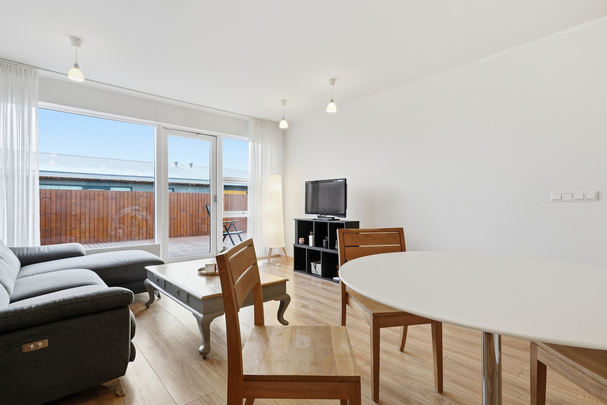 Appartement spacieux (89 m2) situé à l'intérieur d'une écurie de 36 chevaux. Il y a beaucoup de chevaux sur la propriété, Hólaborg est une ferme d'élevage. Nous avons notre propre lac sur la propriété, nous vous recommandons vraiment de vous promener là-bas pour observer les chevaux et la vie ornithologique unique. La ferme est située à 73 km de Reykjavík, notre emplacement est parfait pour explorer le sud de l'Islande et le Cercle d'or ainsi que pour repérer les aurores boréales. Le magnifique phare et la plage sont à seulement 1 km.