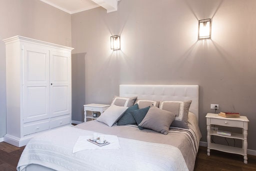 Delight in the old-world charm of this apartment featuring traditional furnishings and vintage decor under a white coffered ceiling. Fix breakfast in a warm kitchen with terra-cotta tile floors and dine at a cozy table while planning an exciting day. Furnished with great care and style in the colors of taupe, light gray and white with some details in gold and black. 55-inchTV with Netflix available to our guests, fast WIFI via fiber, heating and air conditioning. The apartment is located in a strategic position, Via Maggio n.1: in the heart of the city, between Borgo San Frediano (considered by Lonely Planet one of the coolest neighborhoods in the world) and the extraordinary monuments and masterpieces of Florence such as the Ponte Vecchio, the Uffizi Museum, Il Duomo and the elegant Via Tornabuoni with its super-chic shops. The possibility of self-check in will soon be available, especially for those who have to arrive after 7 pm. the entire apartment. We will be at your disposal to give you all informations to spend an authentic vacation in Florence! The apartment is located in the heart of Florence’s historic center, a stone's throw from the famous Ponte Vecchio and its famed jewelry shops. Take a stroll to the Santo Spirito district to discover its lively cafes and vibrant Tuscan restaurants. From the train station Santa Maria Novella you can take the taxi (just 5 minutes) or the bus number 6 and get off in Lungarno Guicciardini ( the bus stop is called "Pescaia di santa Rosa") and from there 2 minutes by walk. If you have the car you can park at the Garage Lungarno in Borgo San Iacopo 10 (+39.055.282542 - two minutes by walk from our apartment) If you book it you will avoid the fine as it is in ZTL area. From the Airport of Florence "Amerigo Vespucci" you can take the taxi (around 20 minutes) or take the special bus to reach the central train station; check the website for timetable: www.areoporto.firenze.it on item Transports. The apartment is located in ancient building at the first floor (20 confort steps to make) no elevator. The apartement can accomodate up to 3 adults (King size bed 1,80 m x 2 m, 1 confort sofa bed 1,20 m x 1,90 ) both with lattex hypoallergenic mattresses). It will be possible also to 2 adults with 2 teenagers. Our staff will attend the check-in from 04.00 until 07.00 but if you need a different time please feel to ask and we can find a suitable solution for you . Self check-in will be also available asap. The air conditioning will be at your disposal from middle of April (work in progress)