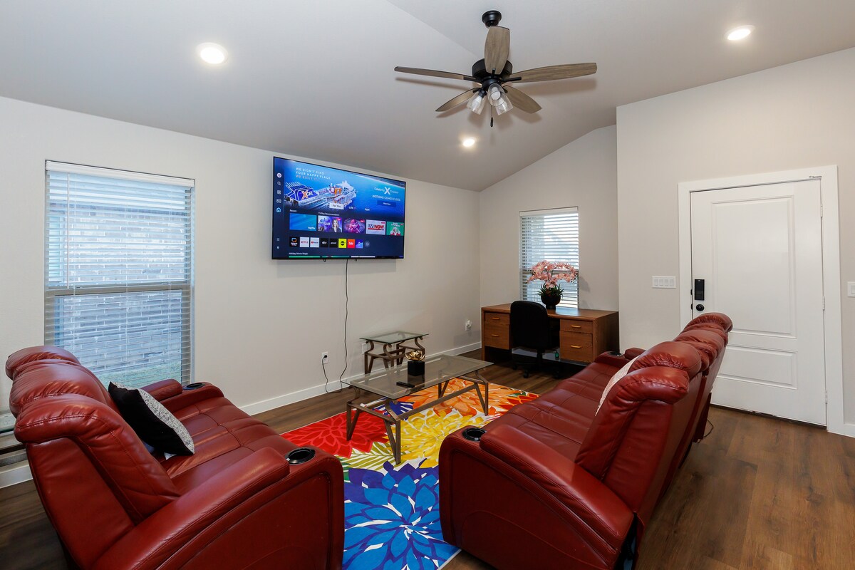 Bungalow d'artisan rénové avec grand porche couvert ! Cette spacieuse maison de 2 chambres et 2 salles de bain complètes offre des espaces de vie élégants et une décoration rustique texane. La cuisine est équipée d'appareils en acier inoxydable et d'un évier de ferme, les armoires ont des portes à fermeture douce et des tiroirs à fermeture automatique. Magnifiques planchers de bois franc d'origine et murs en shiplap. Terrasse accessible par l'arrière et le côté du patio. Cour clôturée avec portail à l'allée. Carport, et un hangar pour le stockage. 1 lit King Size, 1 lit Queen Size, 1 matelas gonflable Queen Size de qualité, canapé. ACCÈS GRATUIT À LA SALLE DE SPORT 24H/24 !