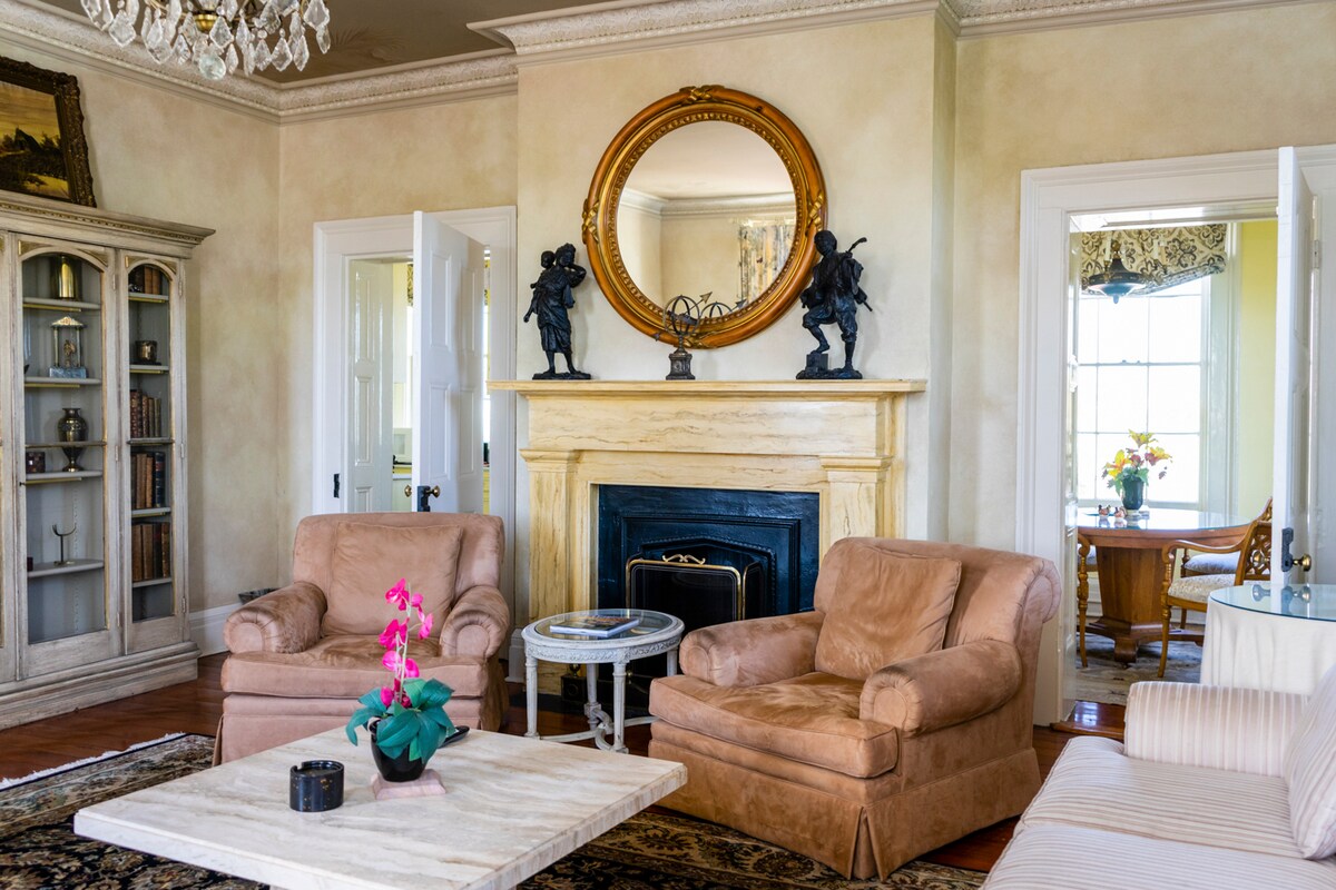 Bienvenue dans la salle MAGNOLIA. Cette auberge historique dispose de 5 chambres de charme avec accès extérieur au cœur du marché et des écuries. Vous profiterez d'un lit King size, d'une salle de bain privée, du wifi, d'une télévision, d'une cheminée pendant les mois les plus frais, d'un mini-réfrigérateur et de collations, pâtisseries et boissons gratuites. MAGNOLIA est située au premier étage avec accès à la place principale. PARKING : il y a plusieurs parkings pratiques à 1 ou 2 pâtés de maisons, allant de 20 $ à 30 $ par nuitée.